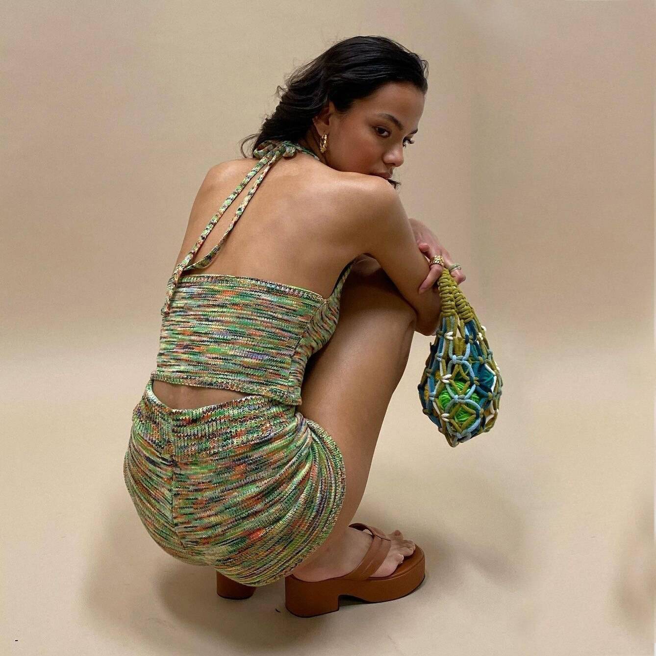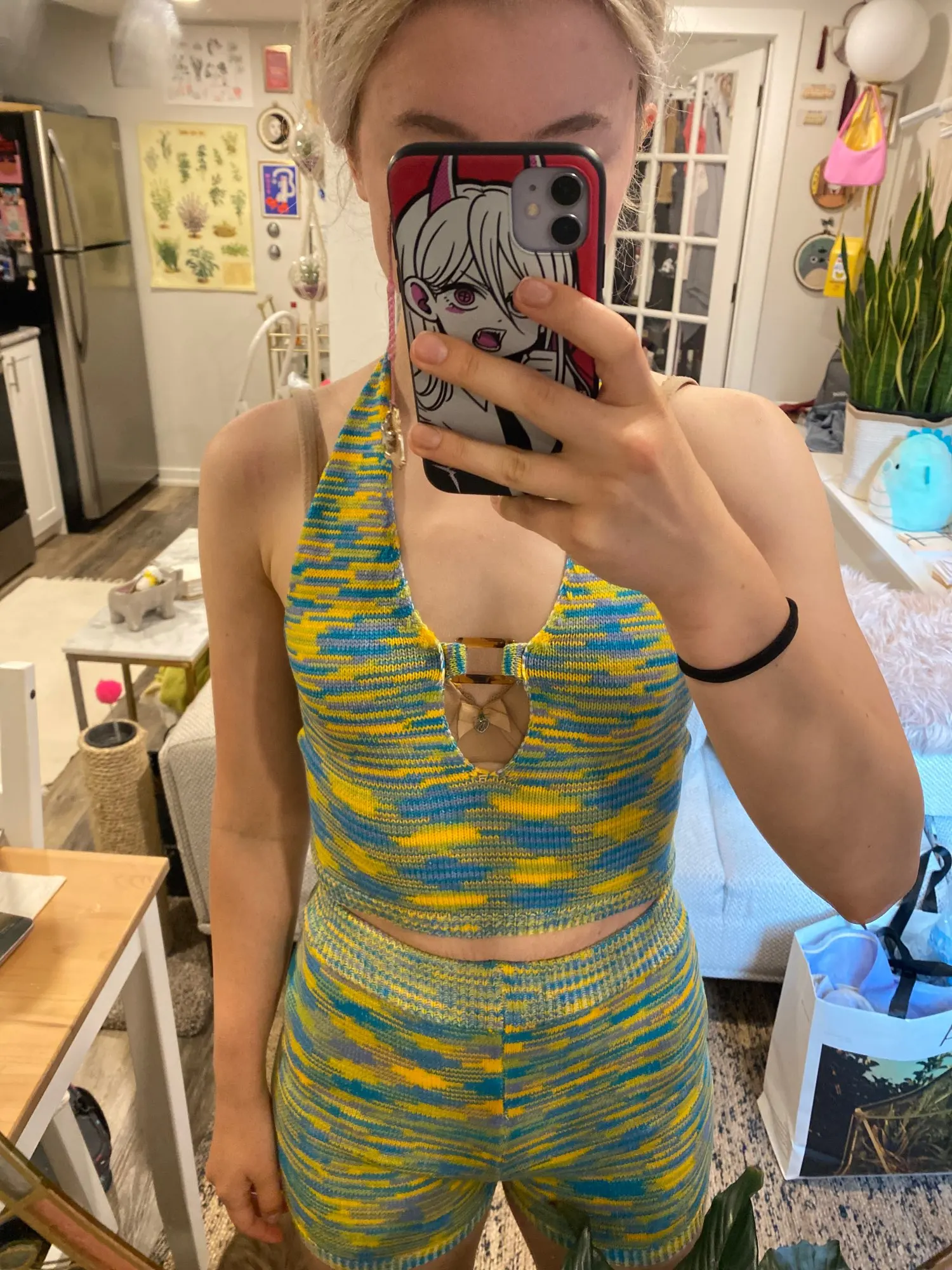 Club Fashion Outfits Rainbow Halter Cut Out Top And Shorts OUT0840