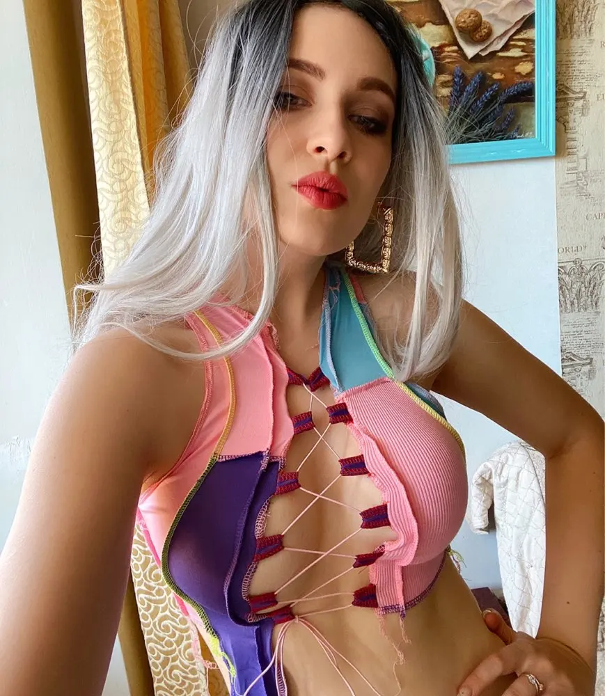 Very beautiful top, perfect for summer, bright color, very interesting design, the fabric is pleasant light, you hold on the body freely, my parameters fit well: height 175 cm, chest volume 90 cm, waist 68 cm, I recommend to buy)