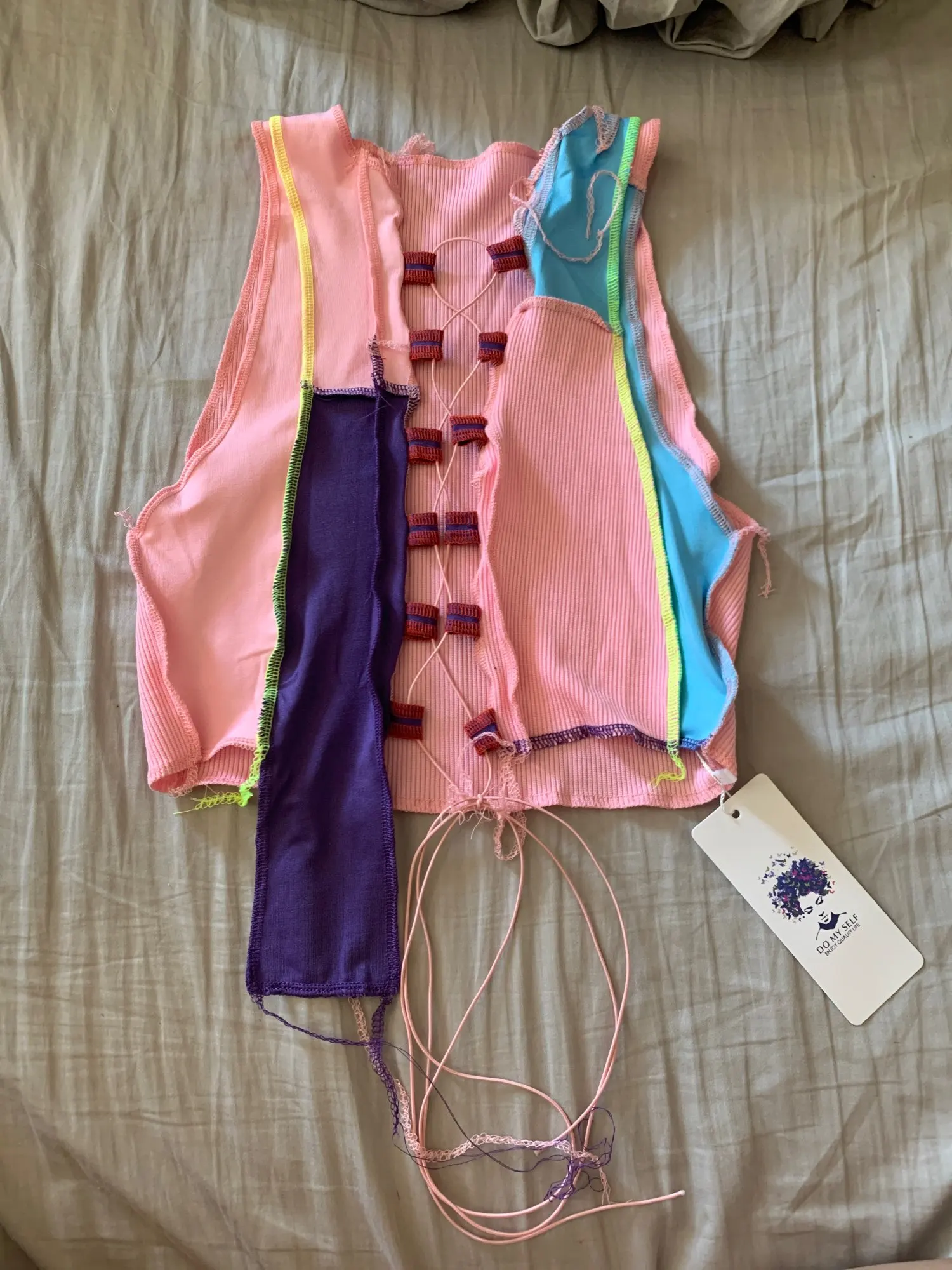 Very happy with this top! Ordered a large. I’m a 36DD so was worried the top wouldn’t be supportive enough but still took the risk after seeing other reviews and it ended up being great!!! The pink side of the shirt is slightly see through so if you’re not comfortable with that def get some pasties! Shipping was okay! I ordered on October 4th and received October 31st.