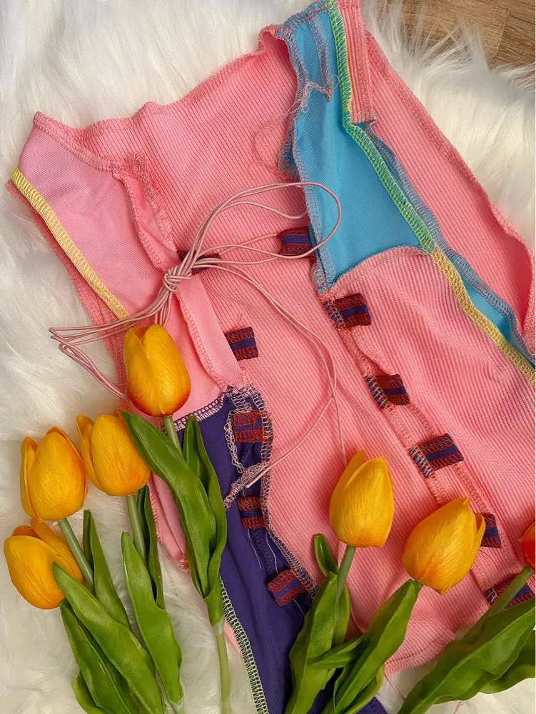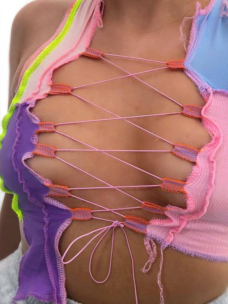 Club Wear Ribbed knitting Colorful Crop Tops OG0737