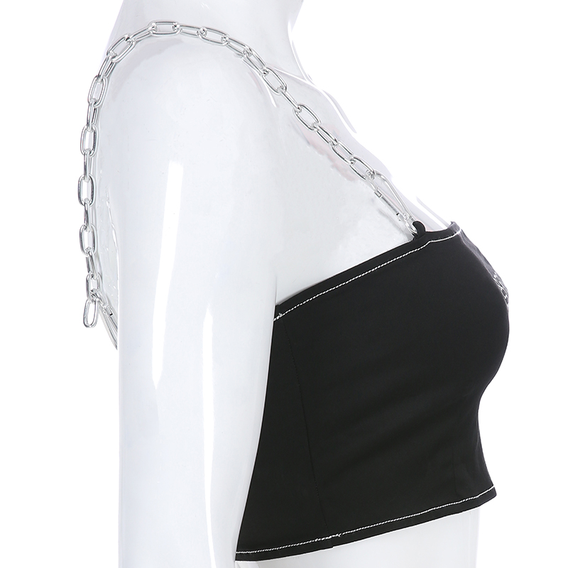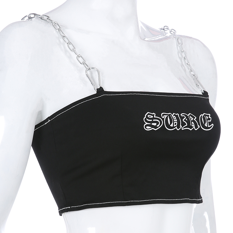 Crop Top Streetwear Black Gothic Strapless Sure Letter Print L0201