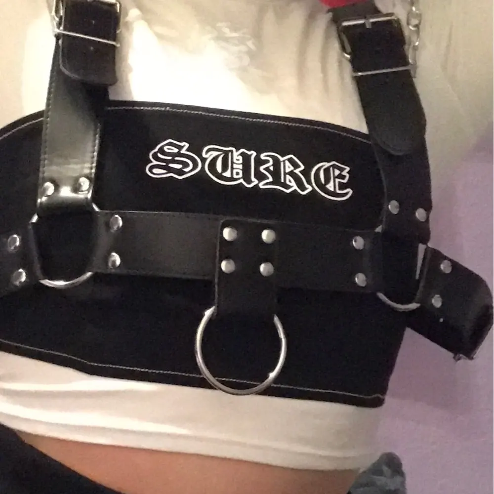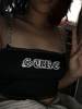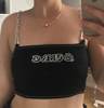 Crop Top Streetwear Black Gothic Strapless Sure Letter Print L0201