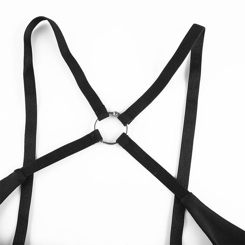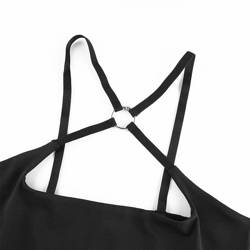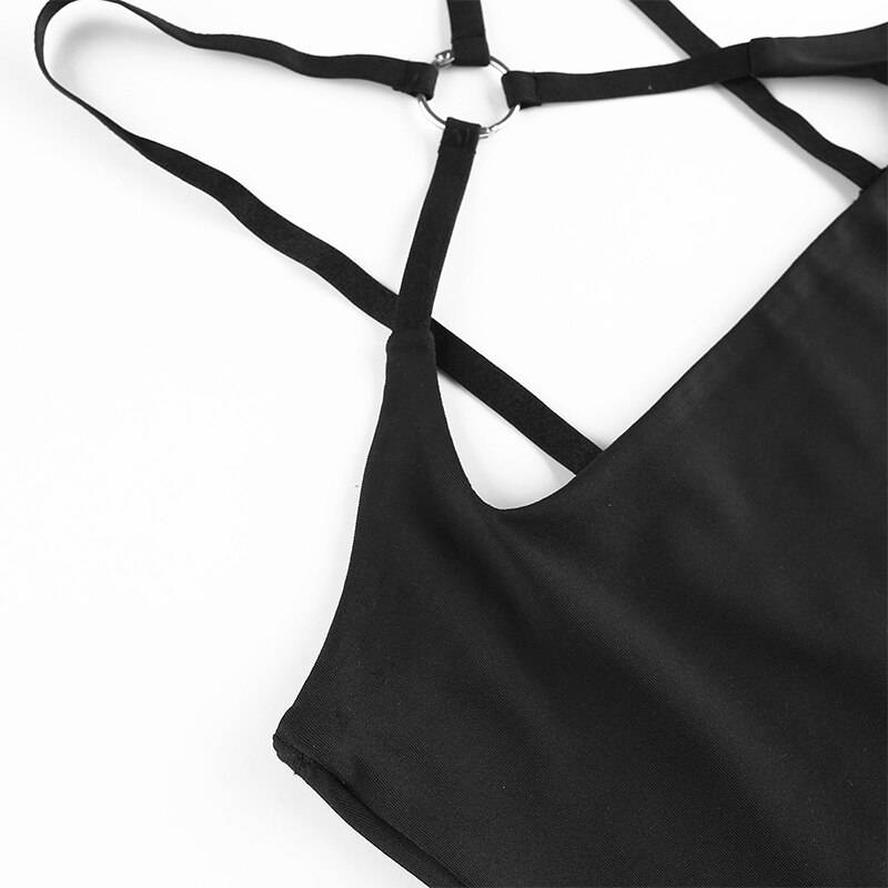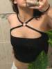 Cross Strap Black Solid Cut Out Crop Top Clubwear OG0739