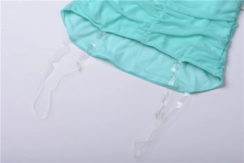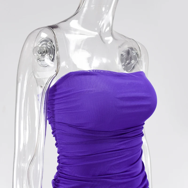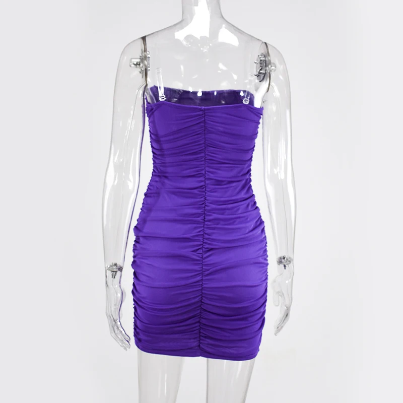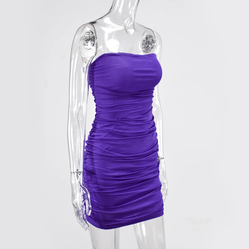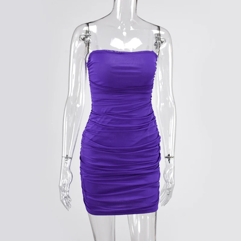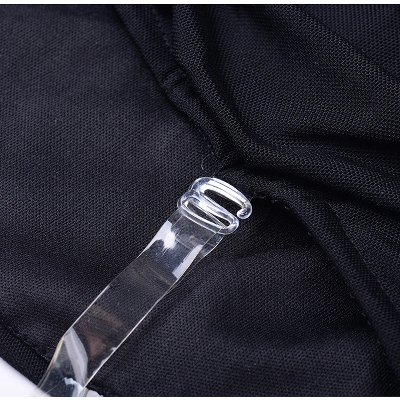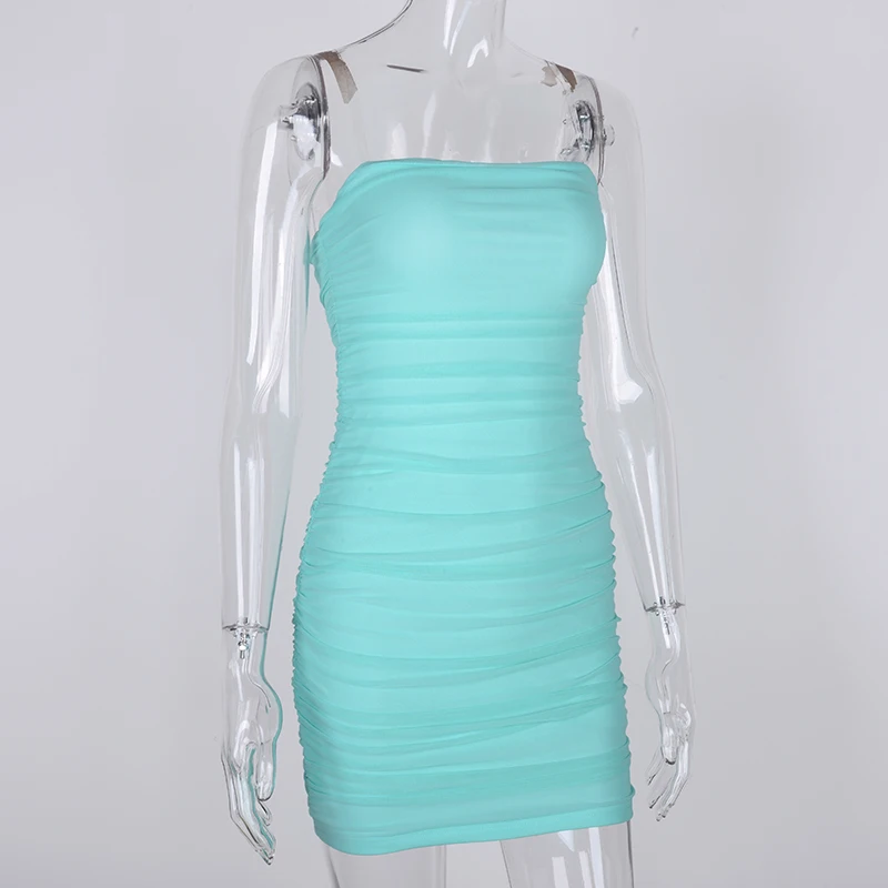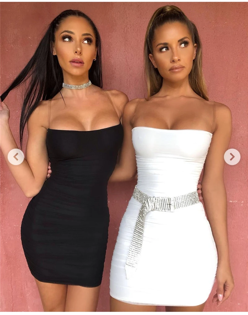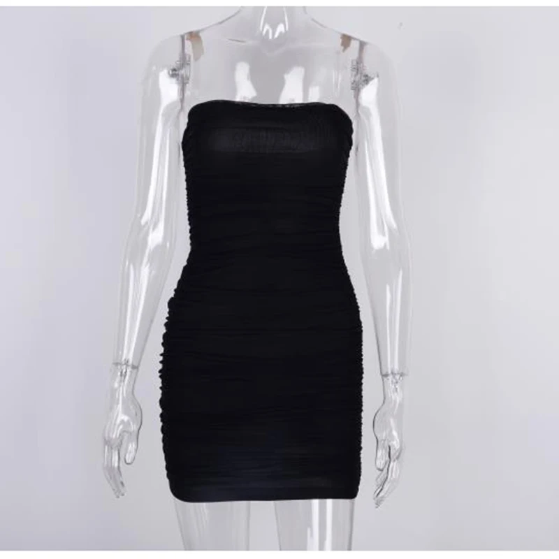Dresses Clear Strap Slash Neck Mesh Short Ruched Bodycon Club Mini Dress L0008