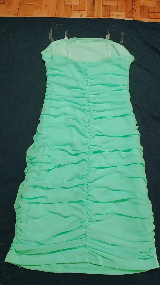 Dresses Clear Strap Slash Neck Mesh Short Ruched Bodycon Club Mini Dress L0008