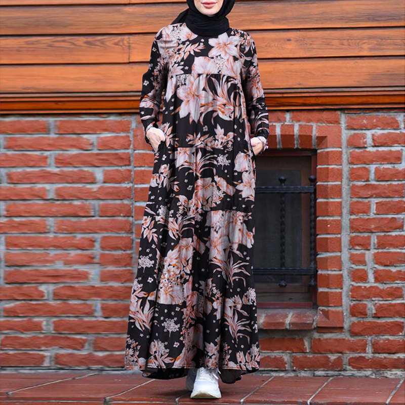 Dubai Abaya Turkey Hijab Vintage Dress Floral Printed OUT0828