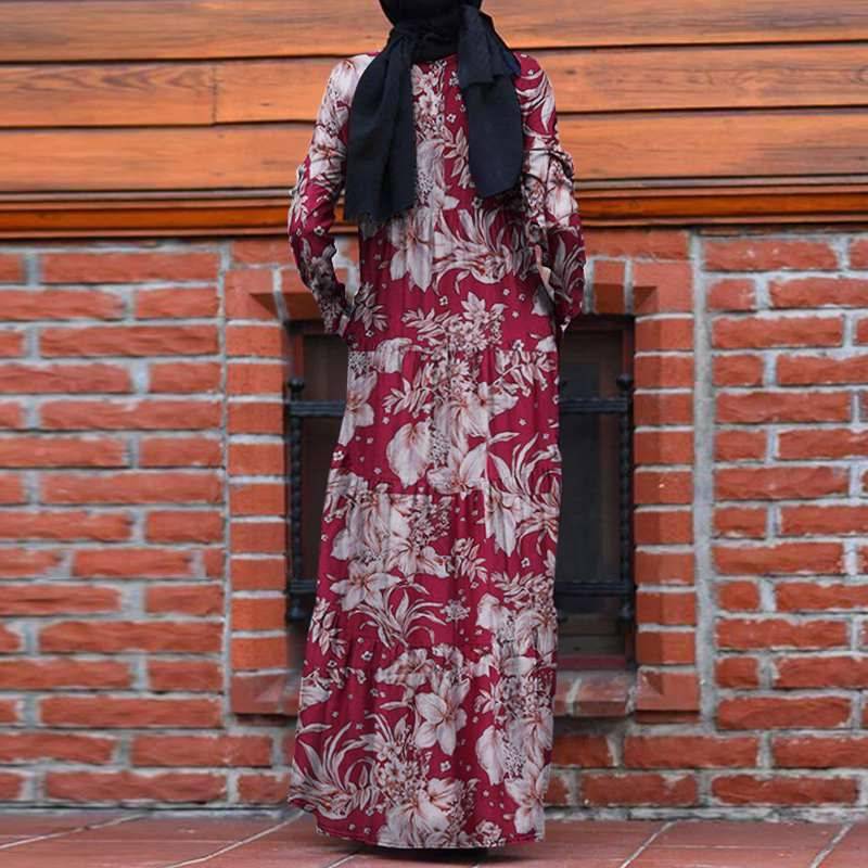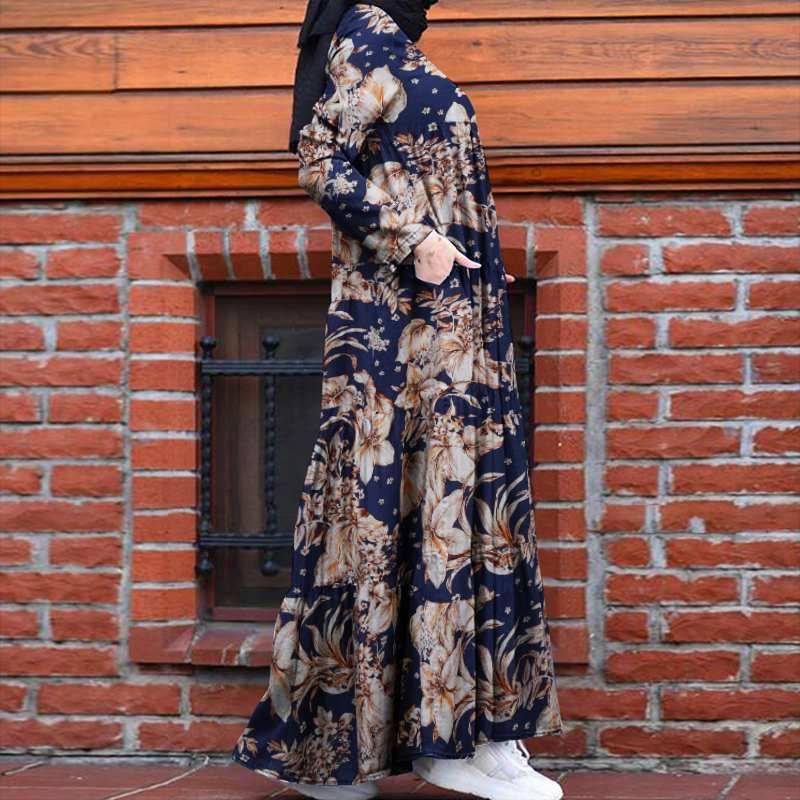 Dubai Abaya Turkey Hijab Vintage Dress Floral Printed OUT0828