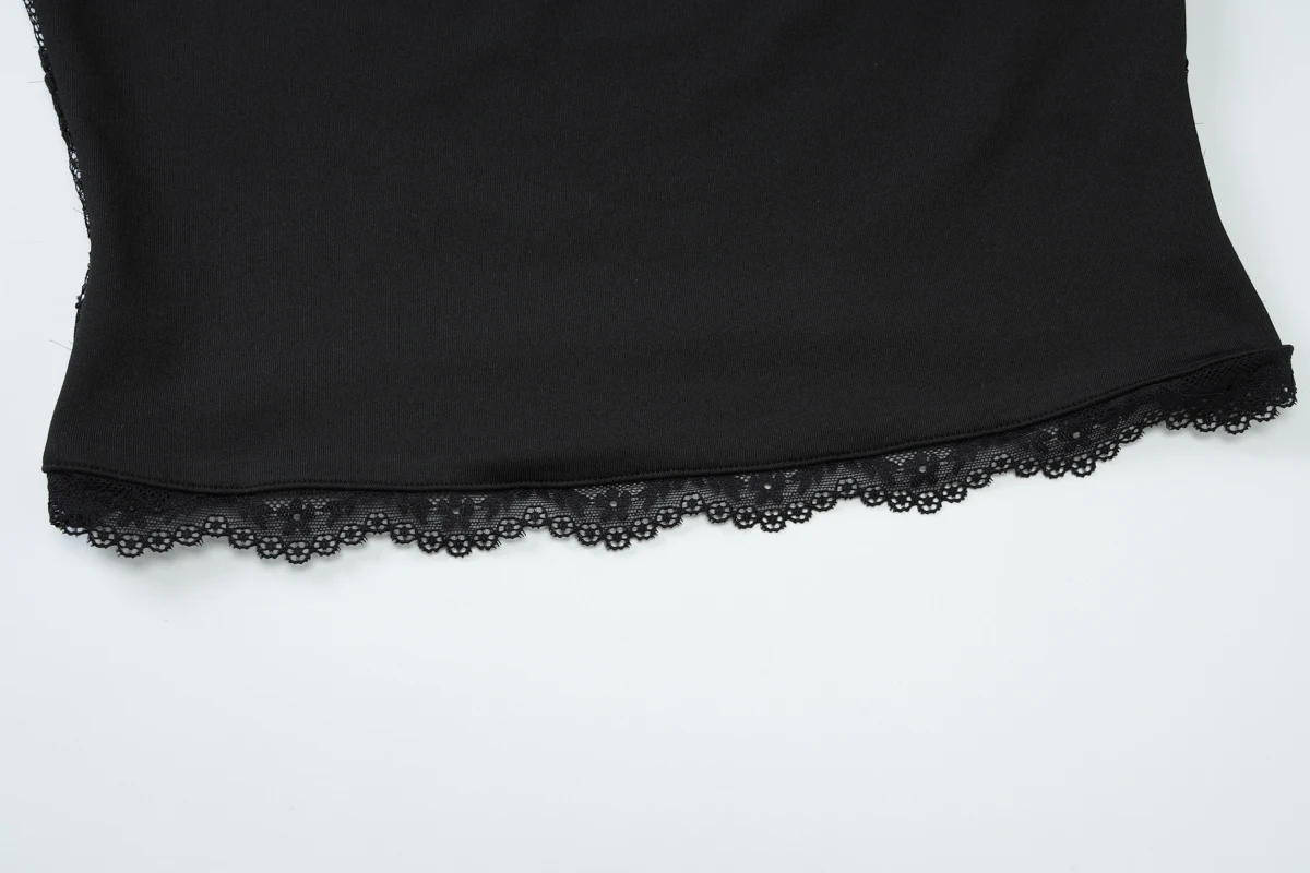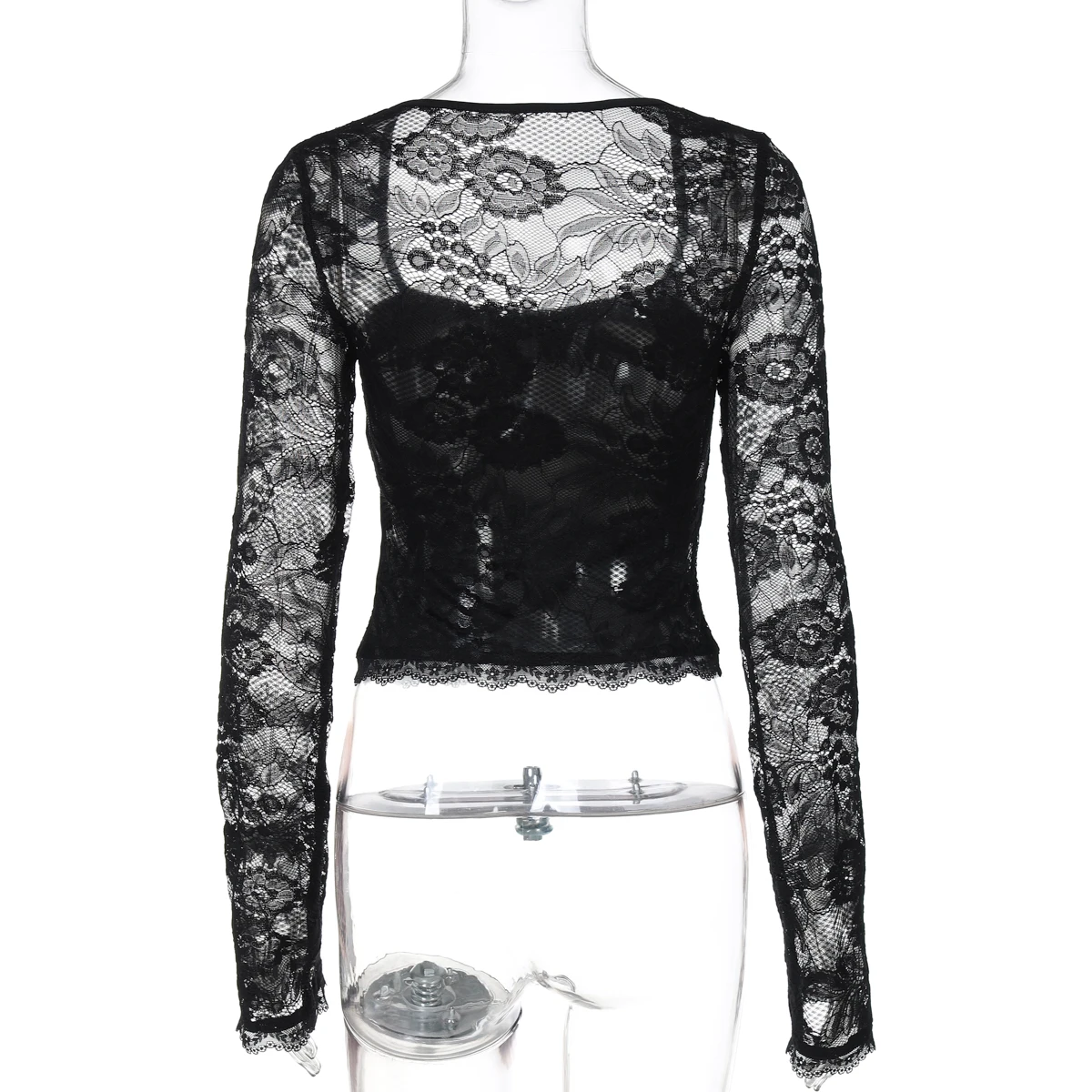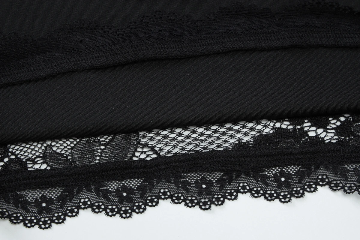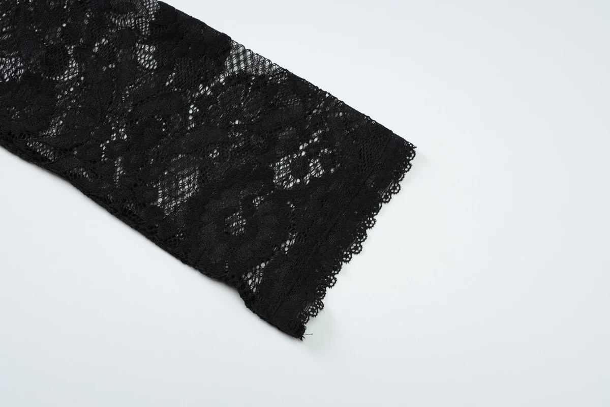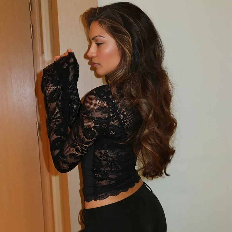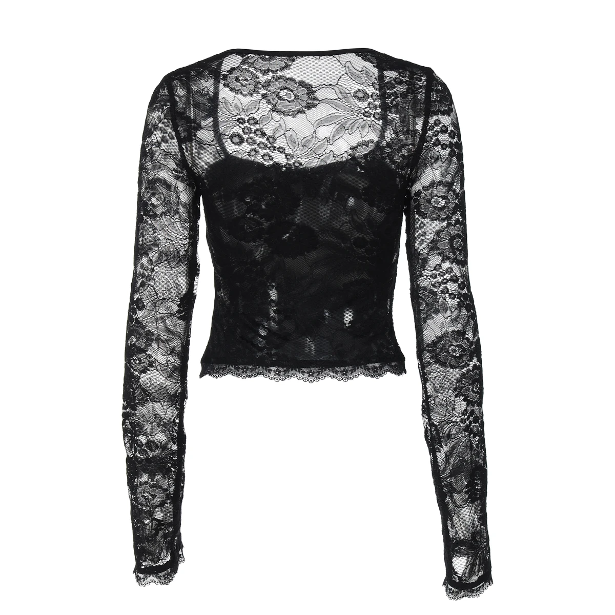 Elegant Lace Patchwork Long Sleeve Square Neck Slim Fit Tops OUT1055