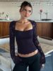 Elegant Lace Patchwork Long Sleeve Square Neck Slim Fit Tops OUT1055