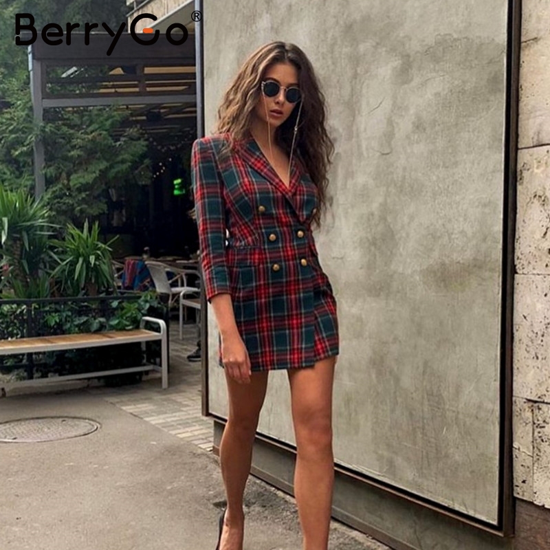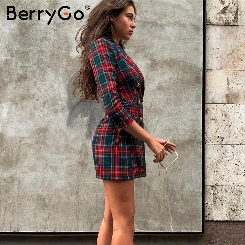 Elegant Plaid Dress Streetwear Autumn Winter Short Dresses L0317