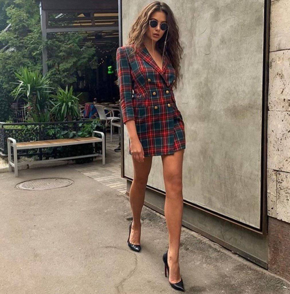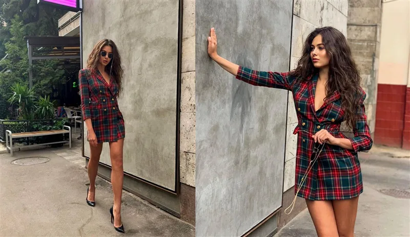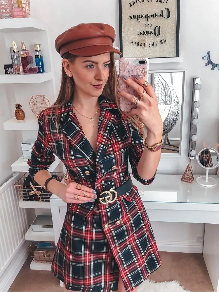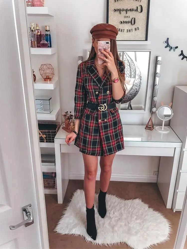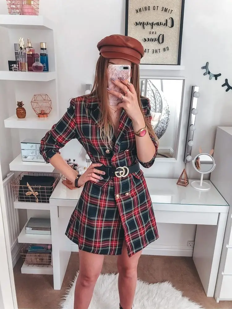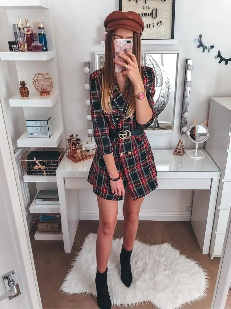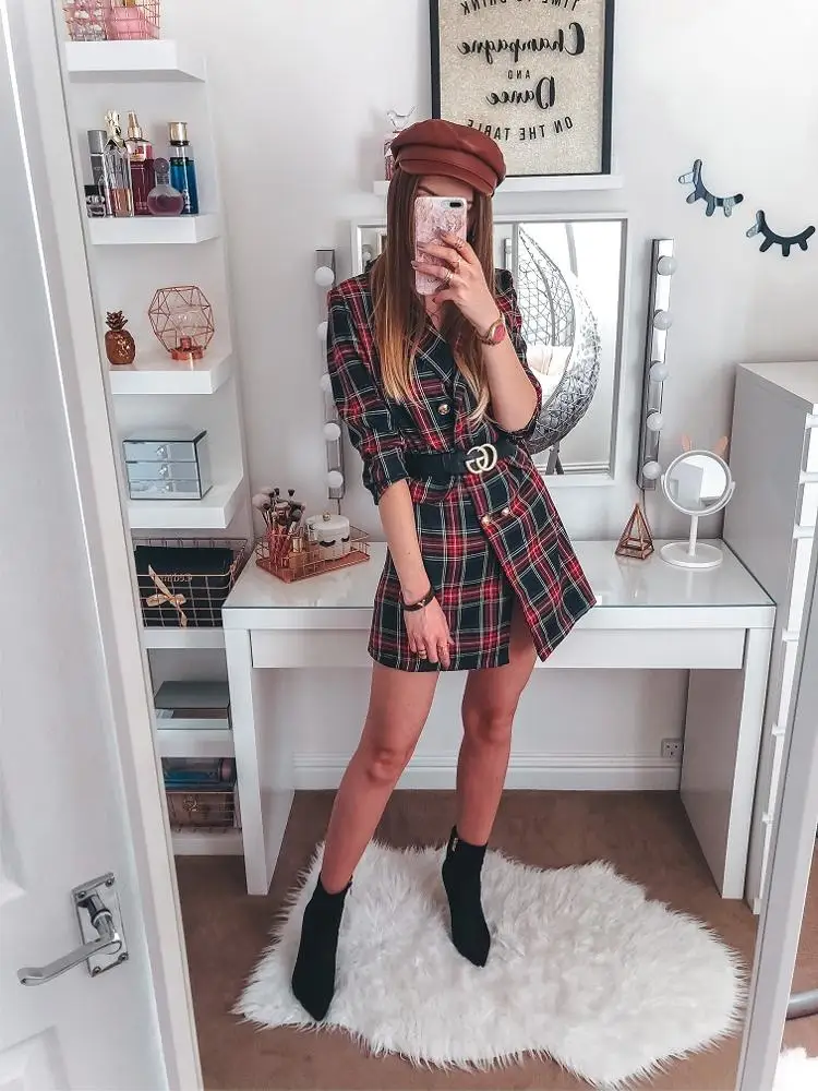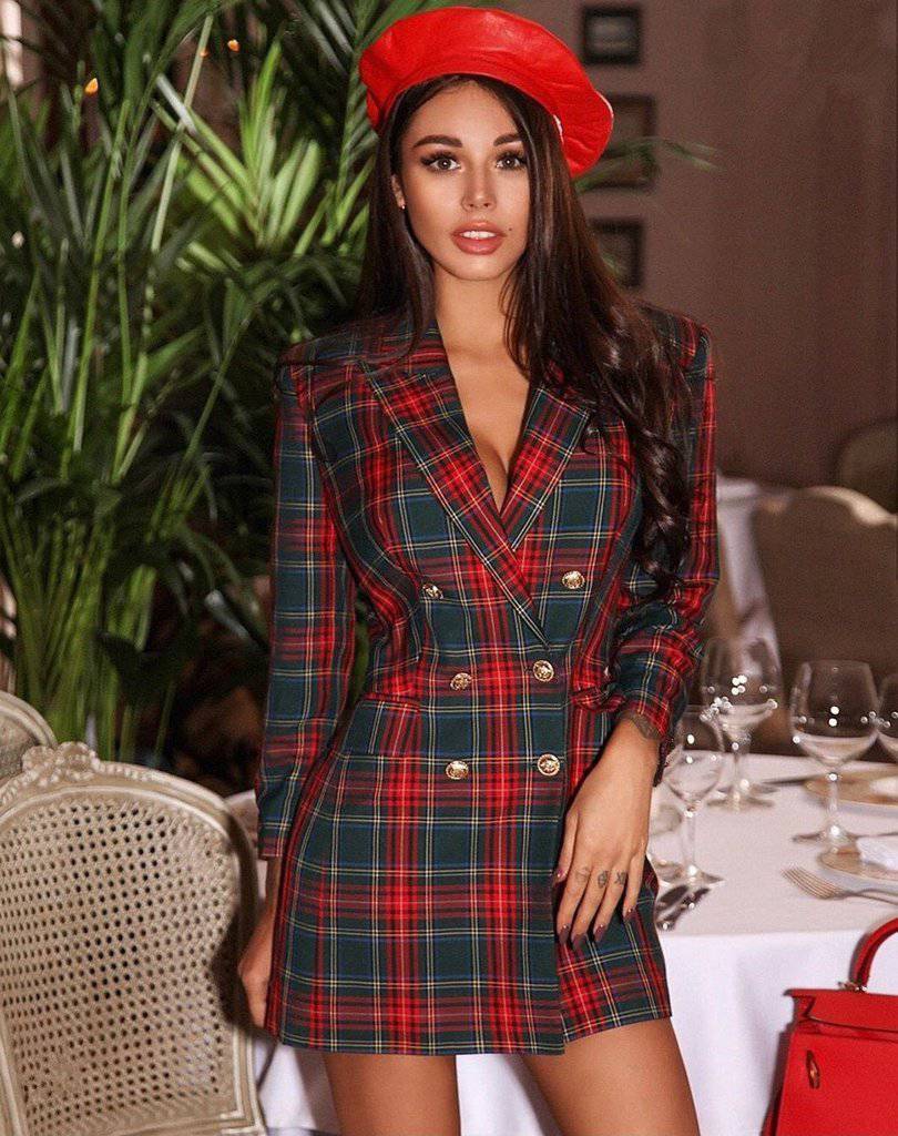 Elegant Plaid Dress Streetwear Autumn Winter Short Dresses L0317