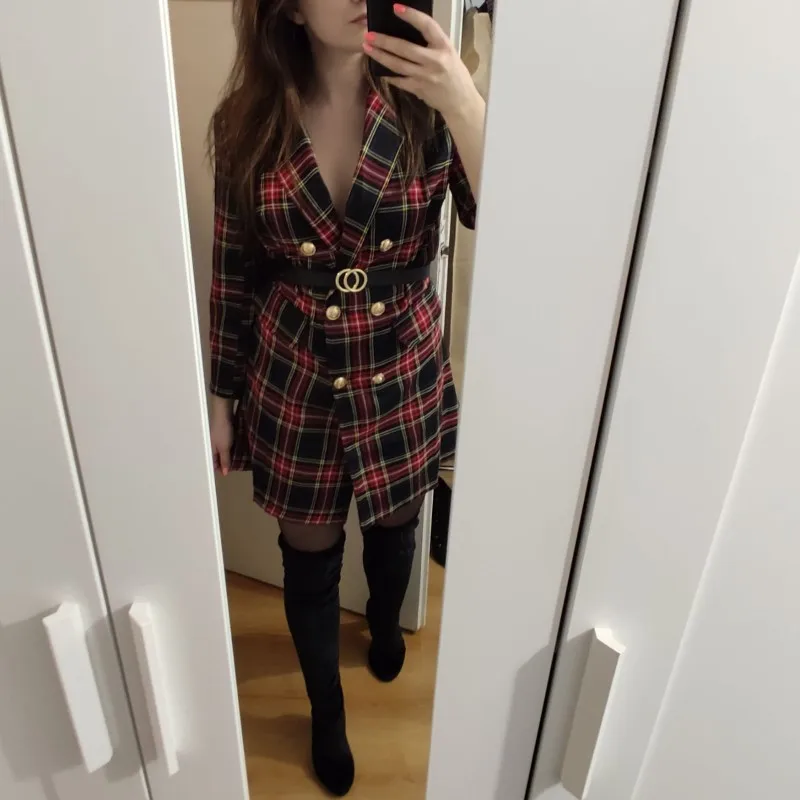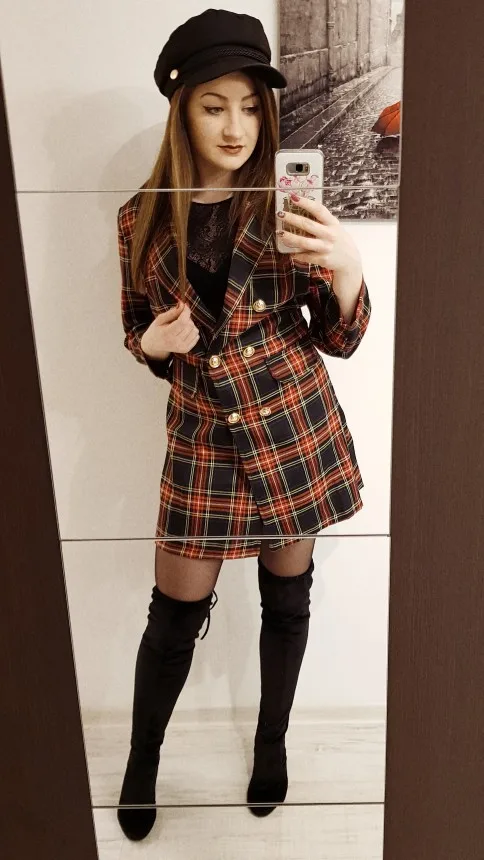 The perfect sailor dress! It has a beautiful checkered pattern in beautiful intense colors. Gives an elegant and feminine style. Works in many styles. The material is pleasant and high quality. Fast shipping and delivery. I highly recommend. Size S fits me perfectly. I am 170 cm tall and weigh 54 kg.