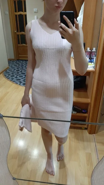 I will immediately say a dress of super quality and after the first wash in the typewriter not a single roller.❄️Price: 963 rub.❄️Delivery about 3 weeks no more.❄My parameters: Waist: 74 cm hip: 88 cm chest: 88 cm height: 155 cm sleeve: 52 I took the beige color, but live it I would say a gentle cream brulee, even closer to the seal. I want ice cream and I compare colors. The size of one is suitable for 42-48 is exactly, My 42 size sits very well. Pullover is free that I like the eye does not cut. The dress itself well, just ideally sat on my figure. Stretches wonderful. The suit is very comfortable and soft. the edges of seamless do not dissolve. All seams are even somewhere stick out threads. The suit is very versatile and practical. Beautifully can be combined with both shoes and sneakers.