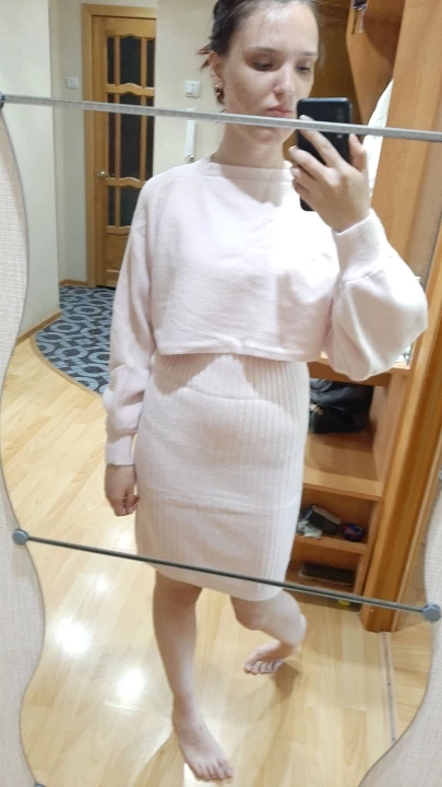 In love with this kit *. *! Very soft, pleasant to the body, warm, walked 1,5 months to Moscow, very satisfied!) definitely recommend! The dress can be combined with other things, universal!) height 170, RR 42-44, the village is straight as it should) sweater by the way, ordered from the same store, also unrealistically cool!)
