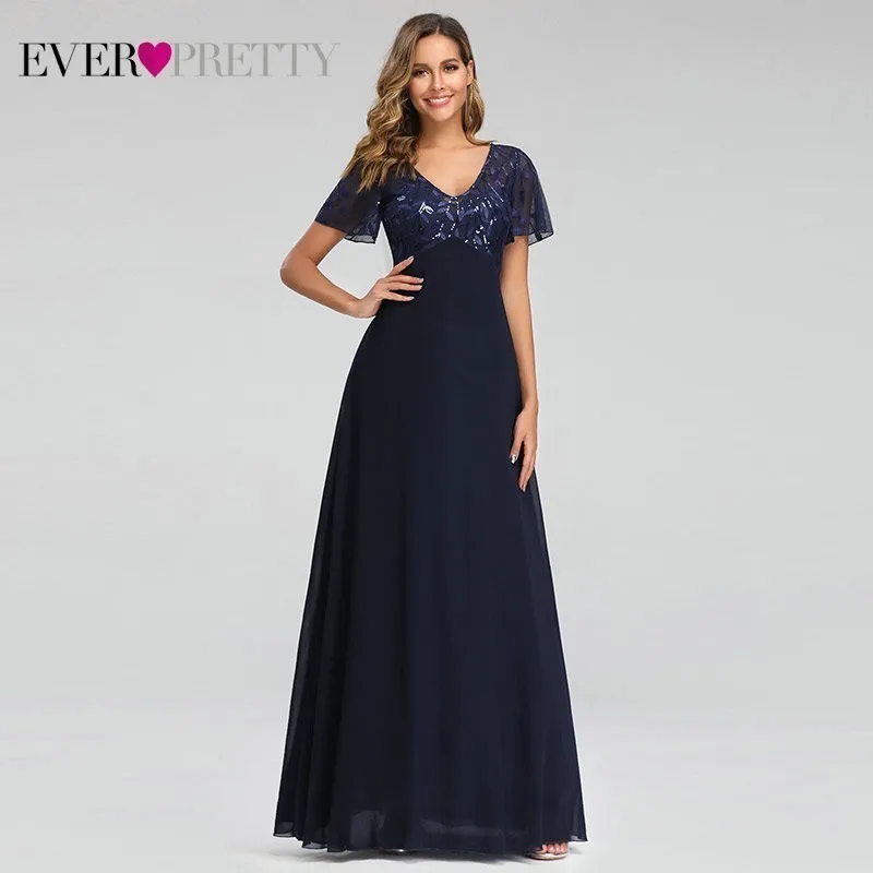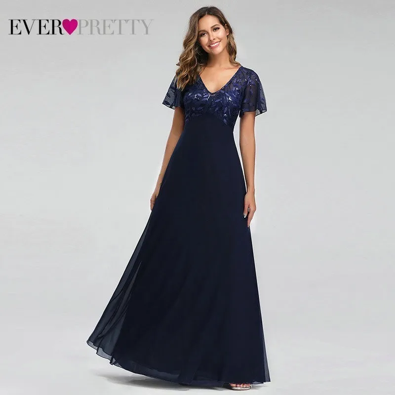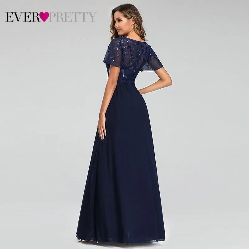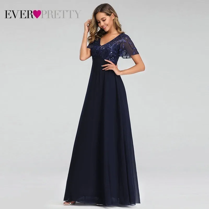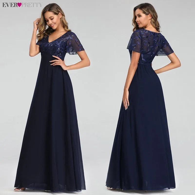 Evening Dresses Elegant Navy Blue Chiffon Lace Embroidery Party Gowns