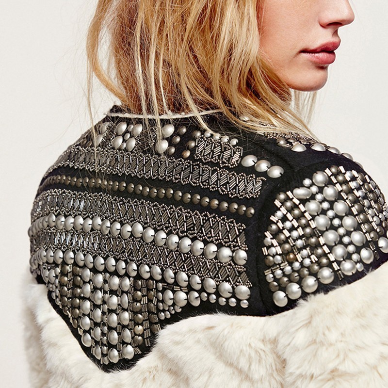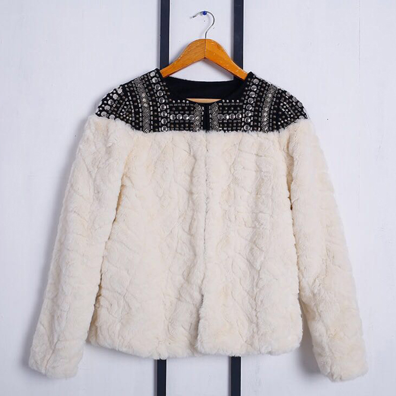 Faux Fur Coat Patchwork Long Sleeve Thick Fleece Rivet