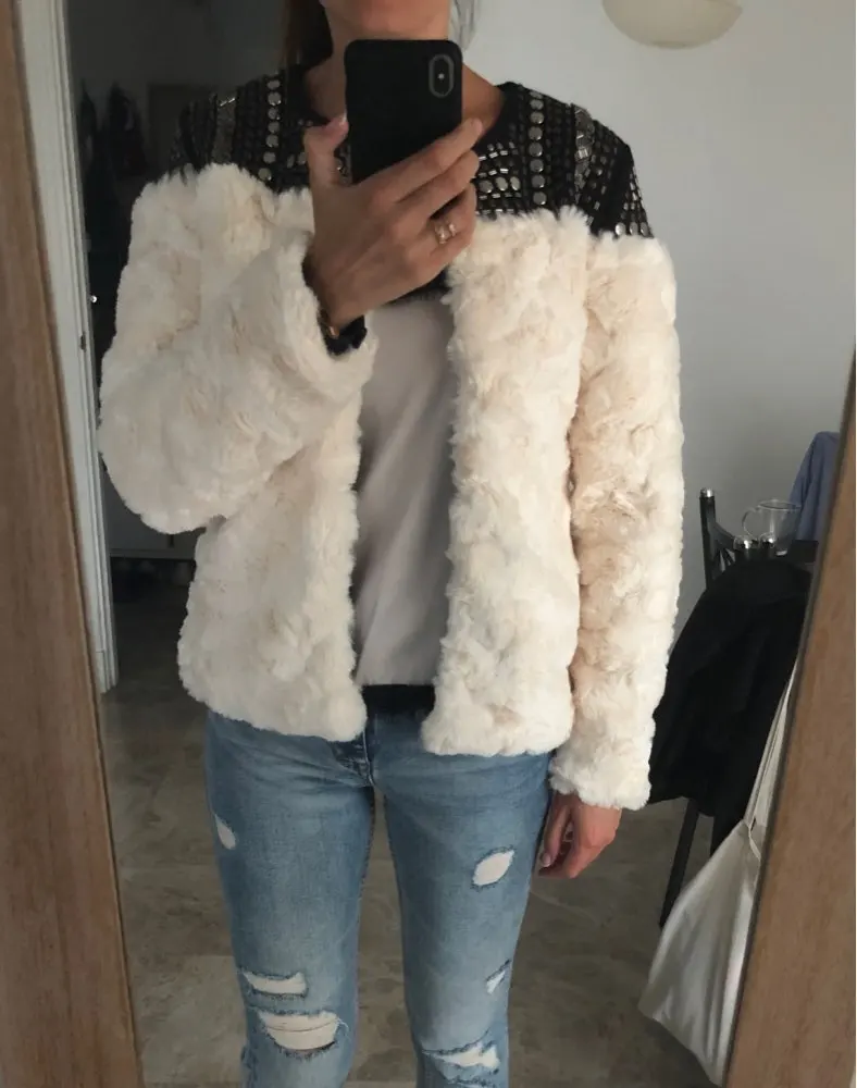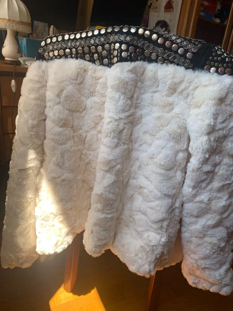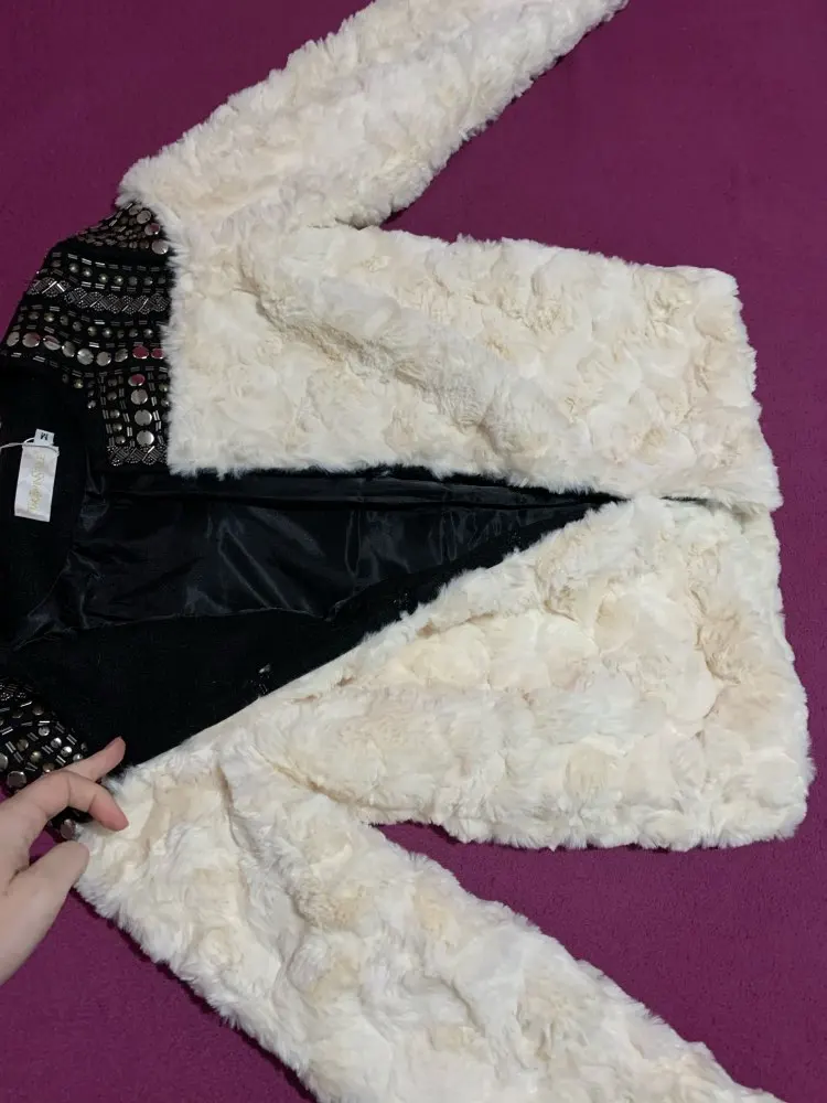 Faux Fur Coat Patchwork Long Sleeve Thick Fleece Rivet