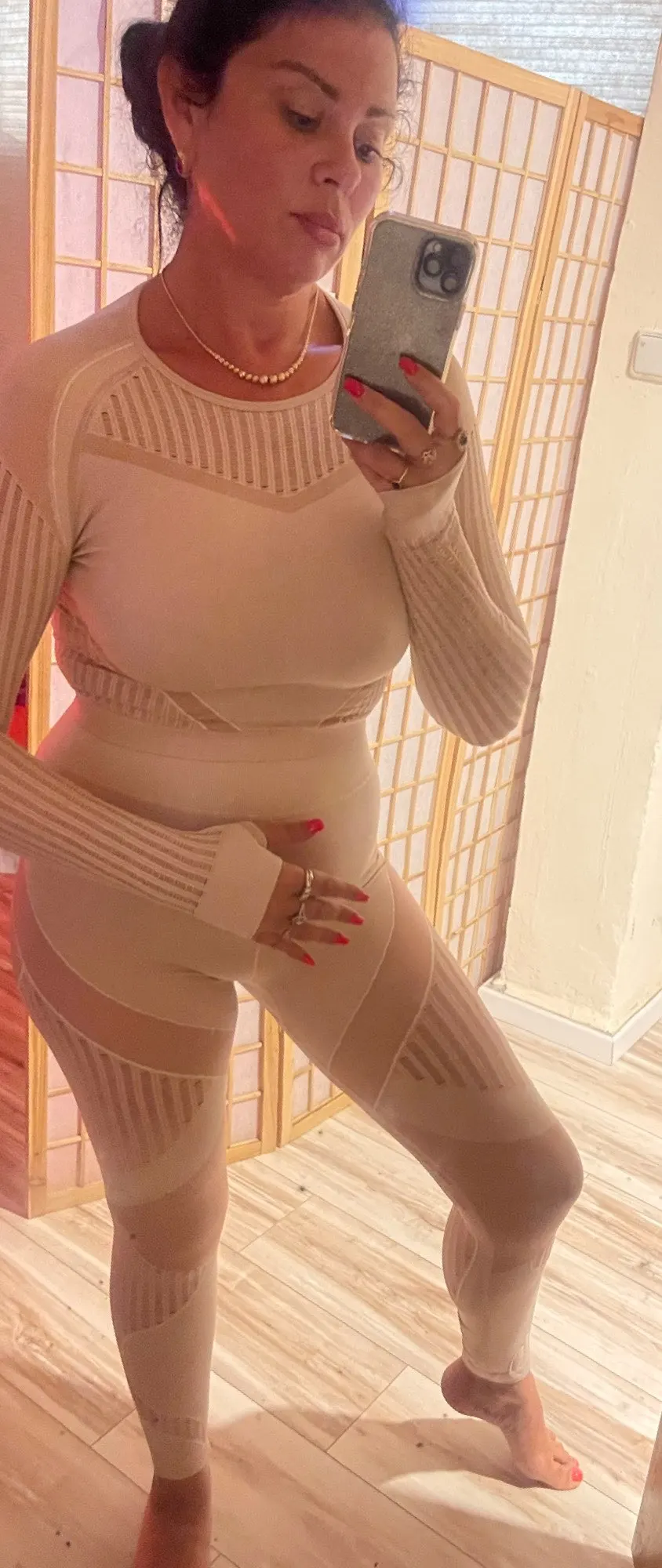 THE SIZE TABLE IS CONFUSING . I am 86/68/90 cm , ordered size S.- pants are fine good for 170-175cm tall girls, but the top is LOOSE on the bottom rim , I had to stitch it to narrow. And the sleeves are short. So GO FIGURE. I could have got XS, if you are skinny under 170cm go for it :) the material IS SO SOFT AND PLEASANT TO WEAR , it kind of cooling when you work out. LOOKS JUST LIKE PICTURES Thanks!