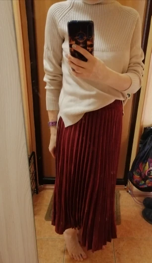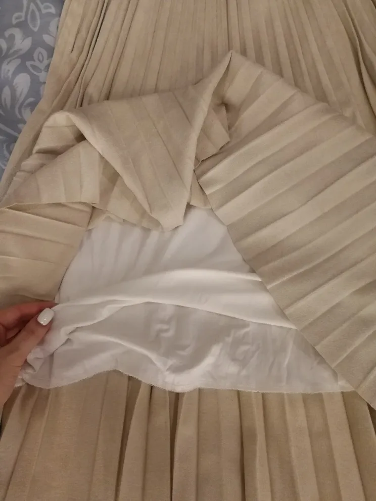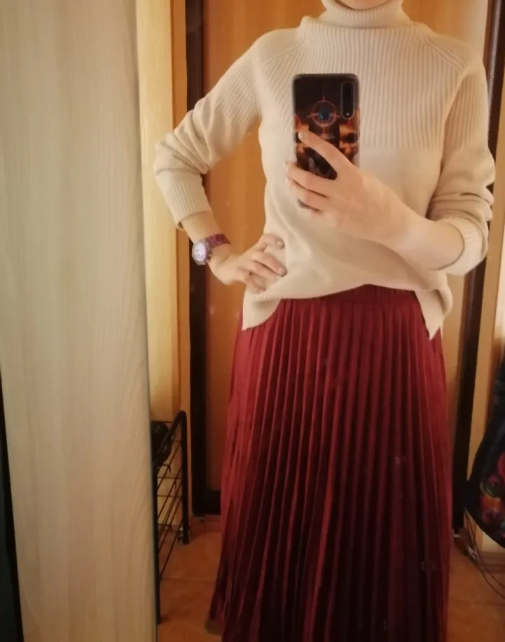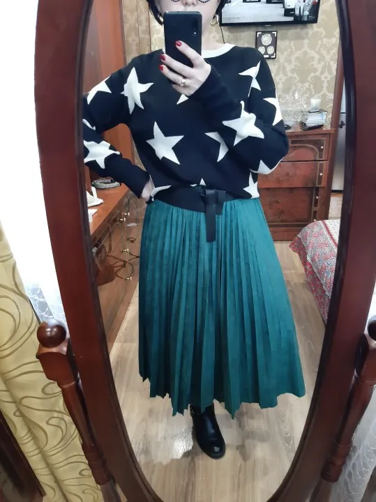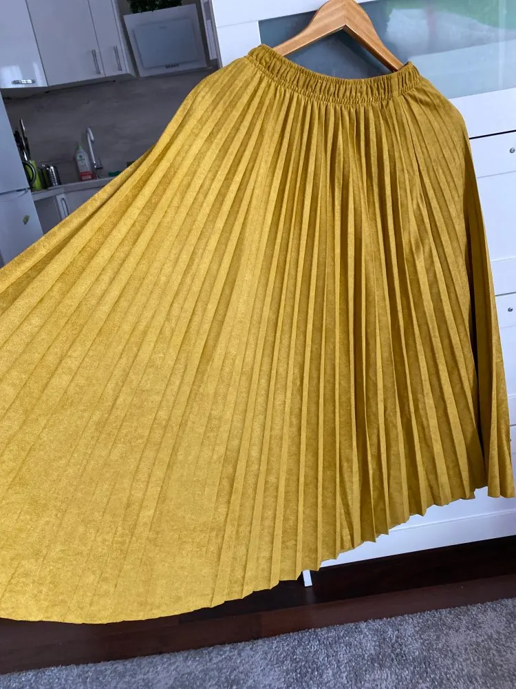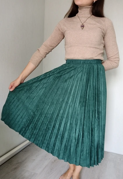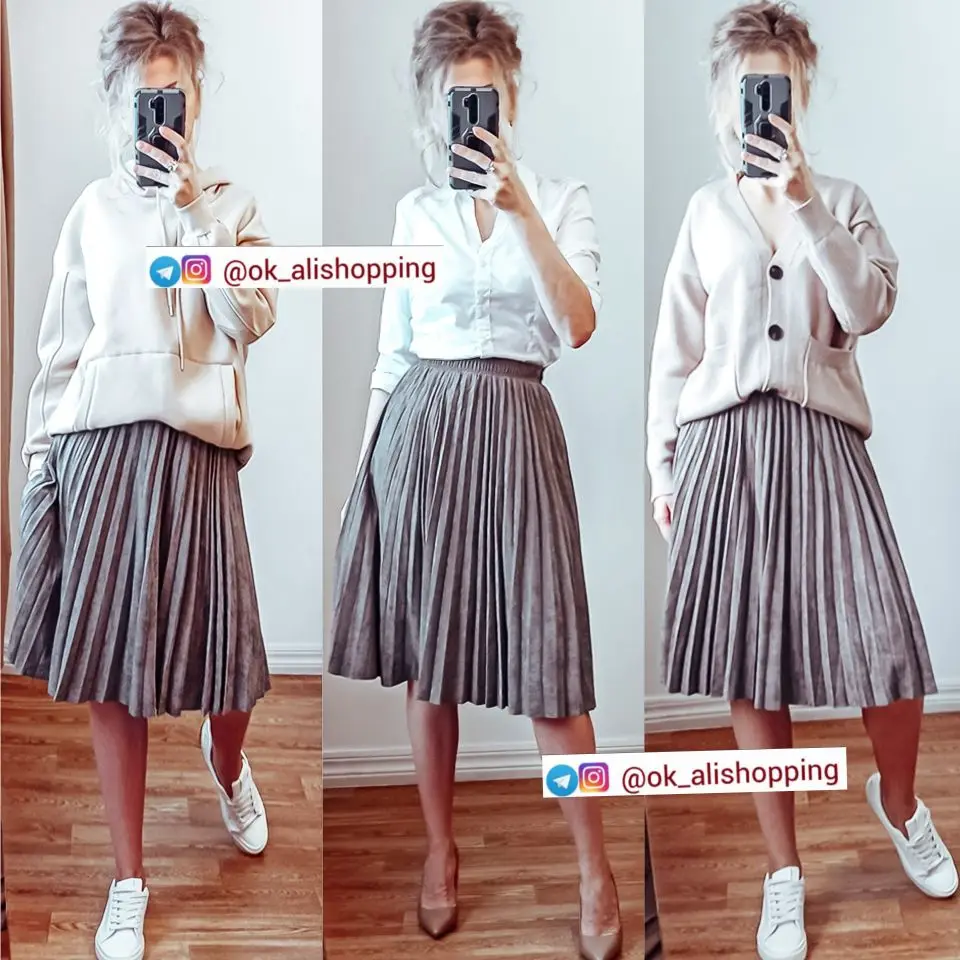 More reviews on Instagram and Telegram @ ok_alishopping Suede pleated skirt. The material is soft, dense, the seams are even, there is a lining, the bottom is not processed, it is not electrified. At 67/93, the growth of 168 approached the r-r XS (at the waist there is a stock up to 75 cm). The waist volume of all sizes is the same, only different length. The store is represented in 14 colors. Delivery 3 weeks. I bought with a coupon for 1300₽.