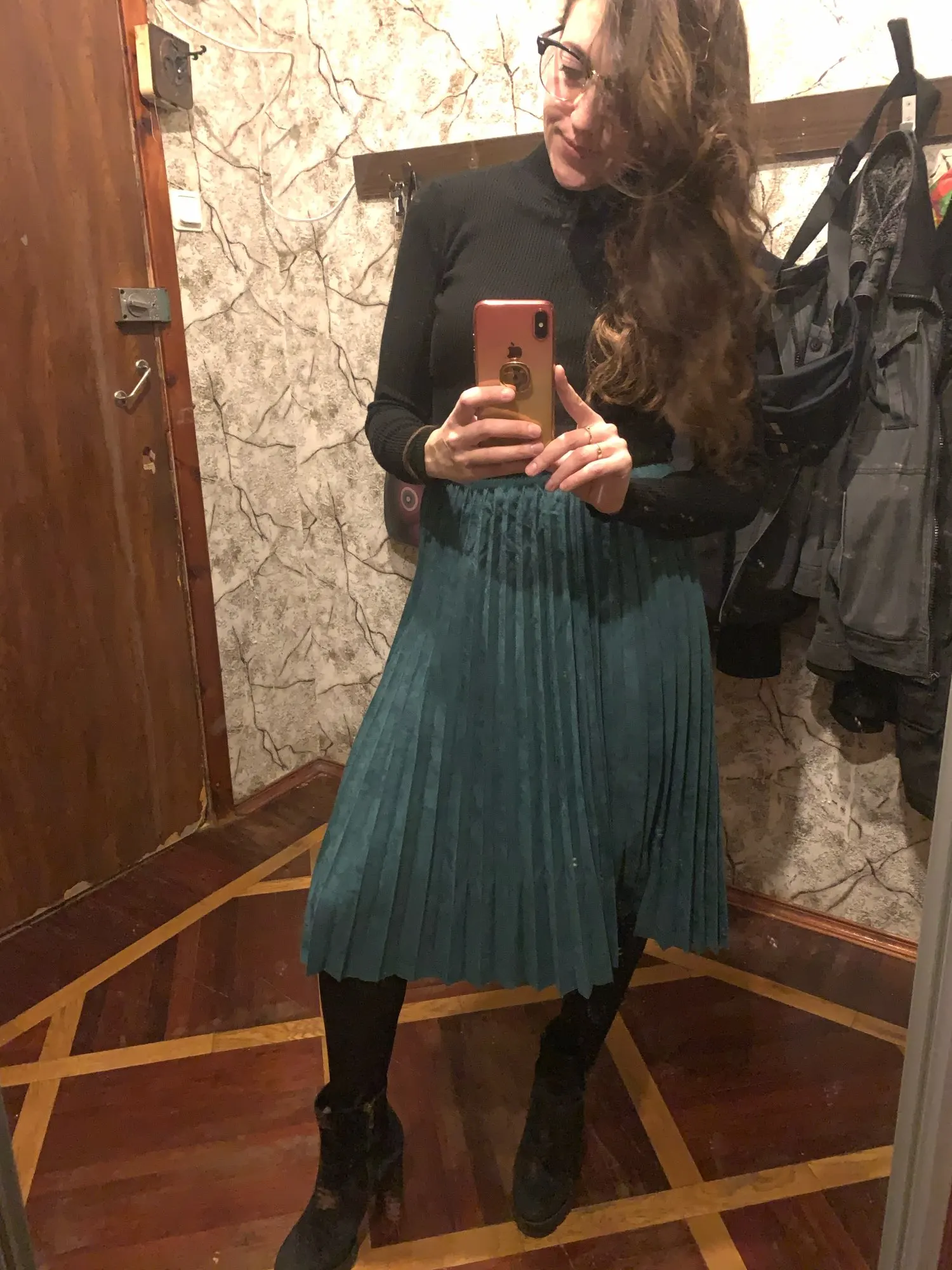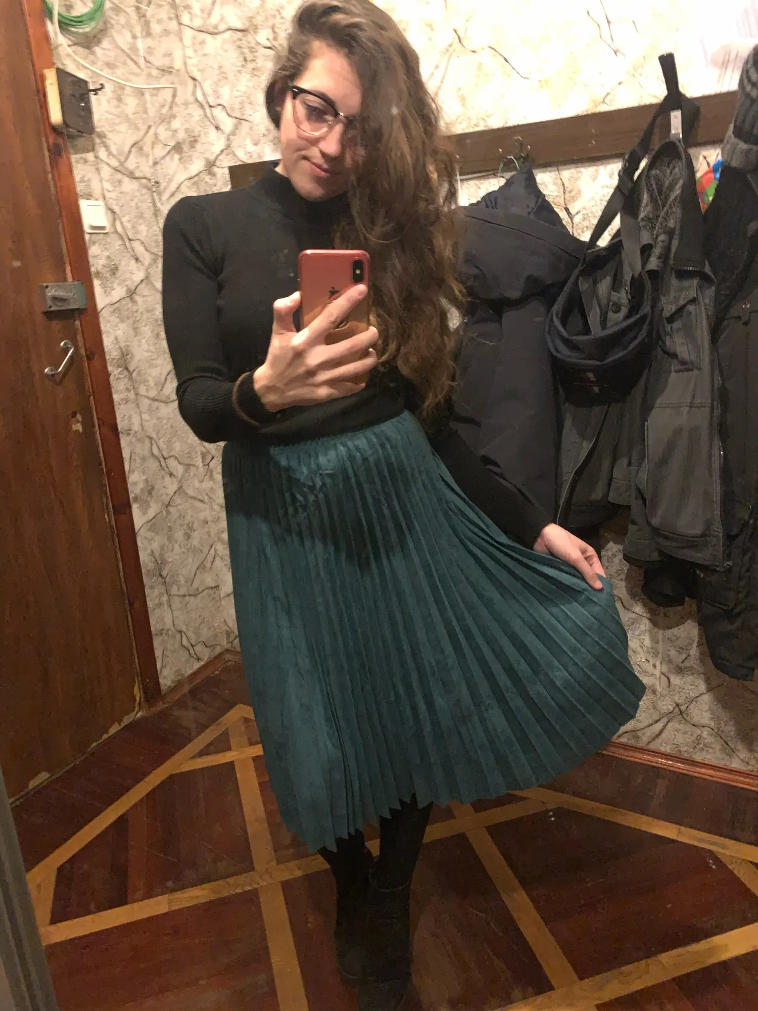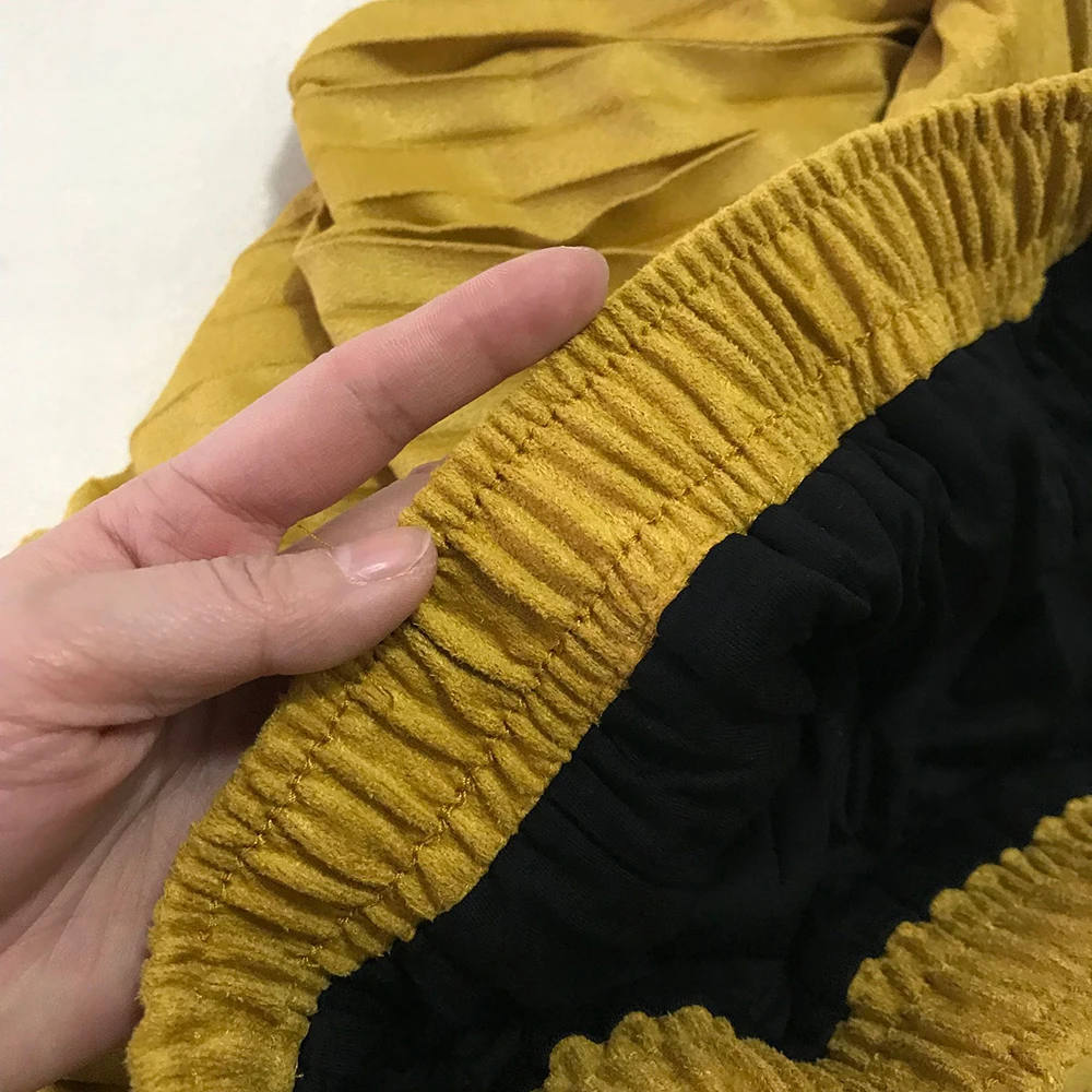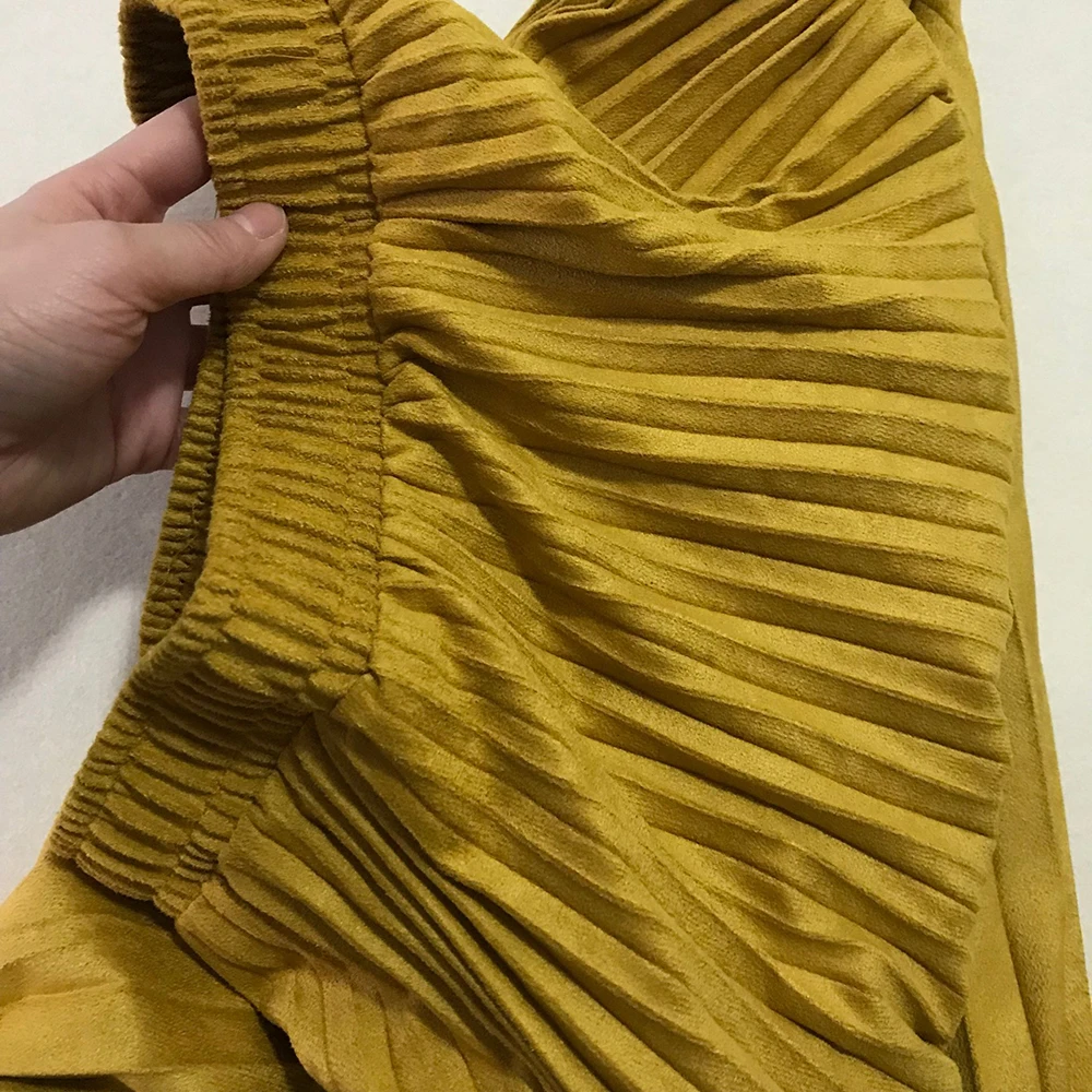 More reviews on Instagram and Telegram @ ok_alishopping Suede pleated skirt. The material is soft, dense, the seams are even, there is a lining, the bottom is not processed, it is not electrified. At 67/93, the growth of 168 approached the r-r XS (at the waist there is a stock up to 75 cm). The waist volume of all sizes is the same, only different length. The store is represented in 14 colors. Delivery 3 weeks. I bought with a coupon for 1300₽.