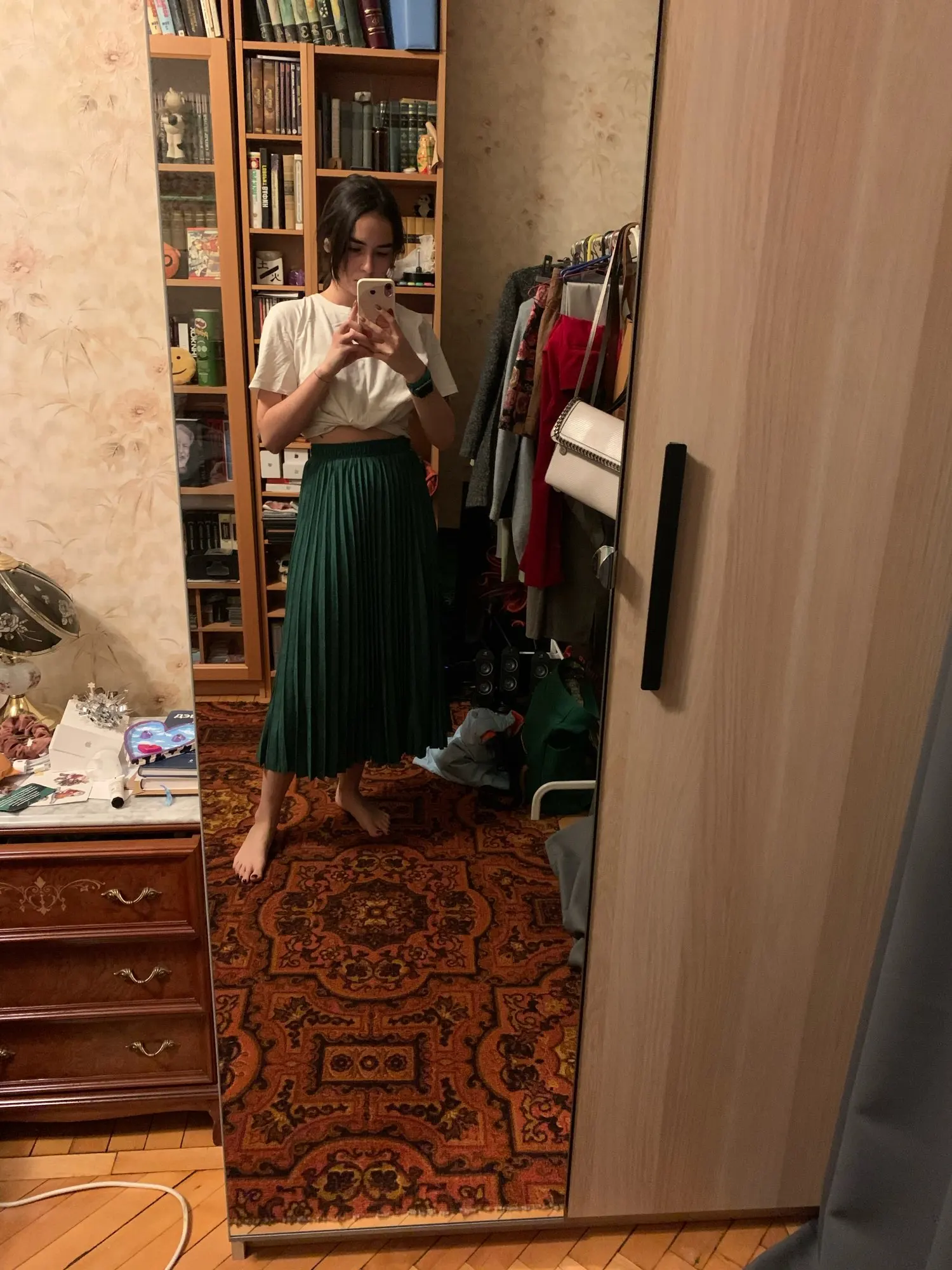 This is the second skirt I have. The first in a dark green color. On this waist a little freer. Probably as lucky as it is. But there's still a little room. Maximum to 75 cm. The length of the height of 168 is excellent, it seems to me that it looks strange to look at this style. The color is milky, beautiful.