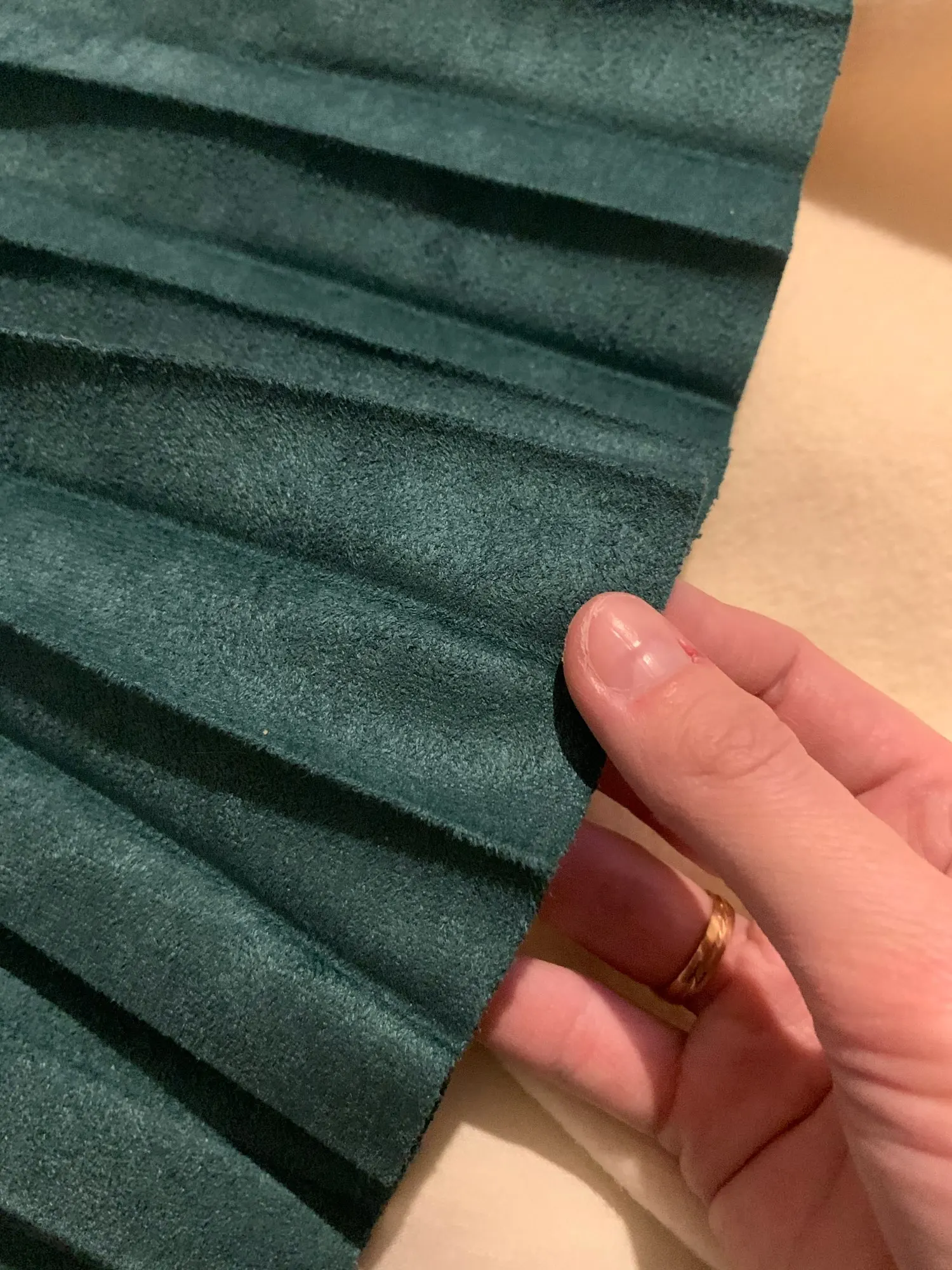 Юбка отличная!!!! Пришла очень быстро. Качество на высоте. Плотная ткань под замшу, есть подкладка. Пояс достаточно тугой, на широкую талию может слишком жать. Покупкой более чем довольна)