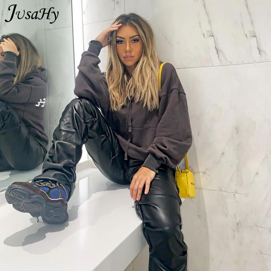 Eco leather pants. WITH A high waist crinkle leg, bottom rozszerzane leg-is adjustable can zwęzić bottom. Front zipped silver slider. Great fashion. Pants układają Sie beautifully. I wearing size M 68 cm waist, 92 cm hip, 174 cm tall. Perfectly fitted-material jeat flexible.