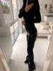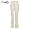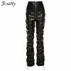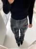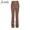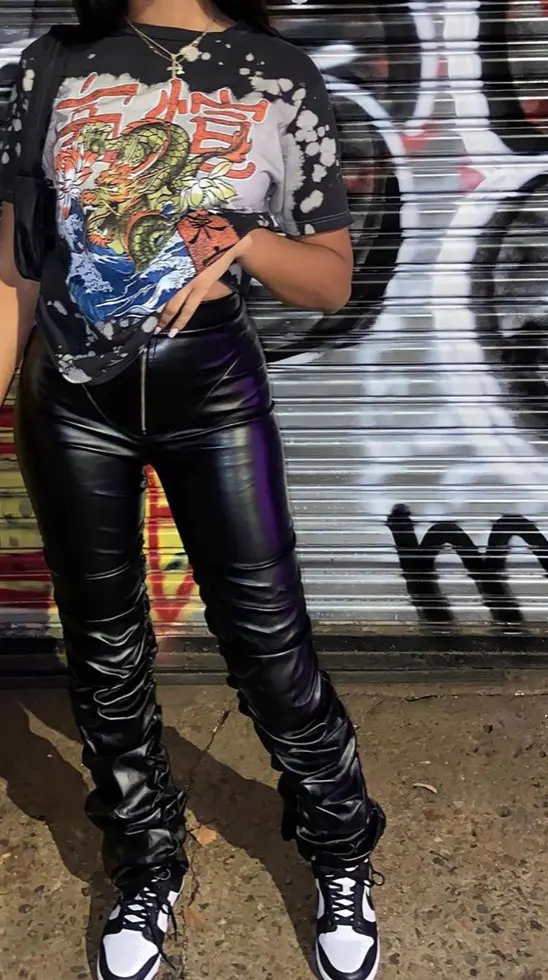 FREE SHIPPING 2022 Trend Black PU Leather Pleated Stacked Pants OUT0895