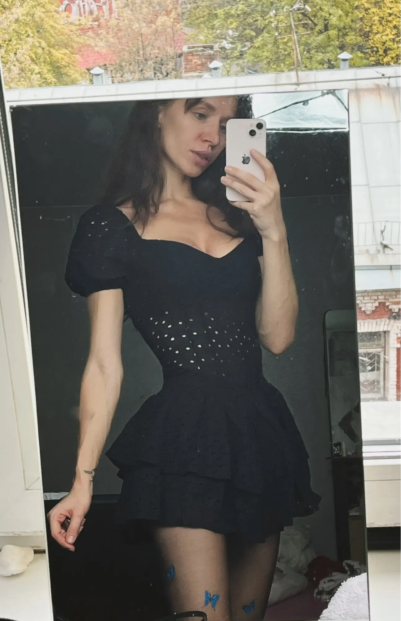 это самое любимое платье ! прекрасного качества и выглядит просто чудесно, короткое и в самый раз с колготками как по мне, и ещё немного просвечивает