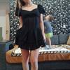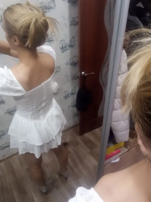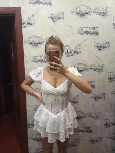 The dress is good, sewn perfectly, but the length is very short, under the skirt shorts, but they are absolutely transparent, besides the wide ones, ahead are going