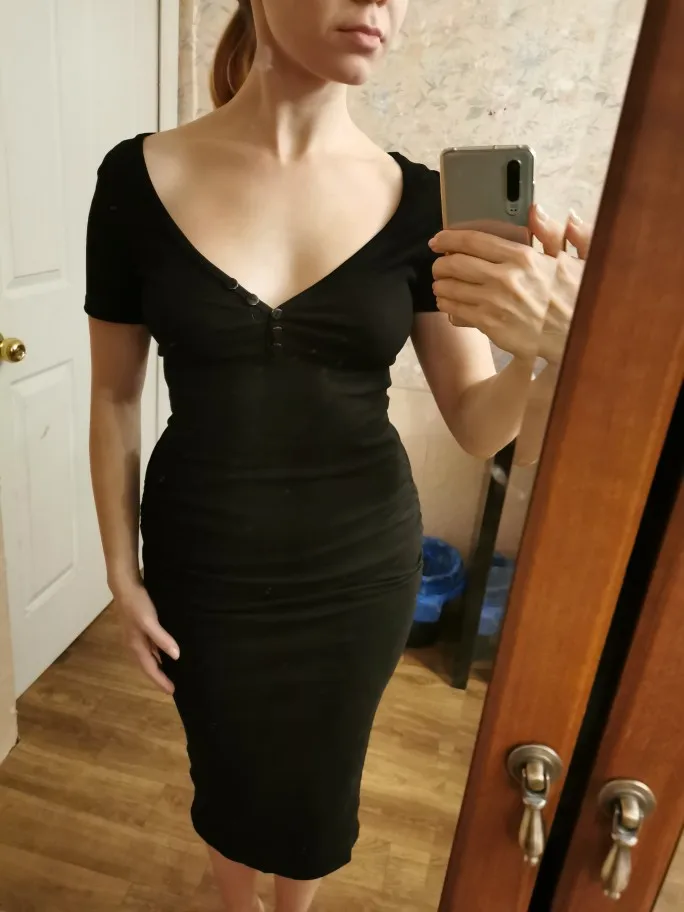 Красивое платье с большим декольте) сел размер s хорошо на грудь объем 80 см бедра 89 см, сбоку сборки для лучшей посадки, мне нравится)