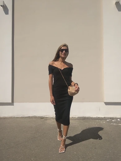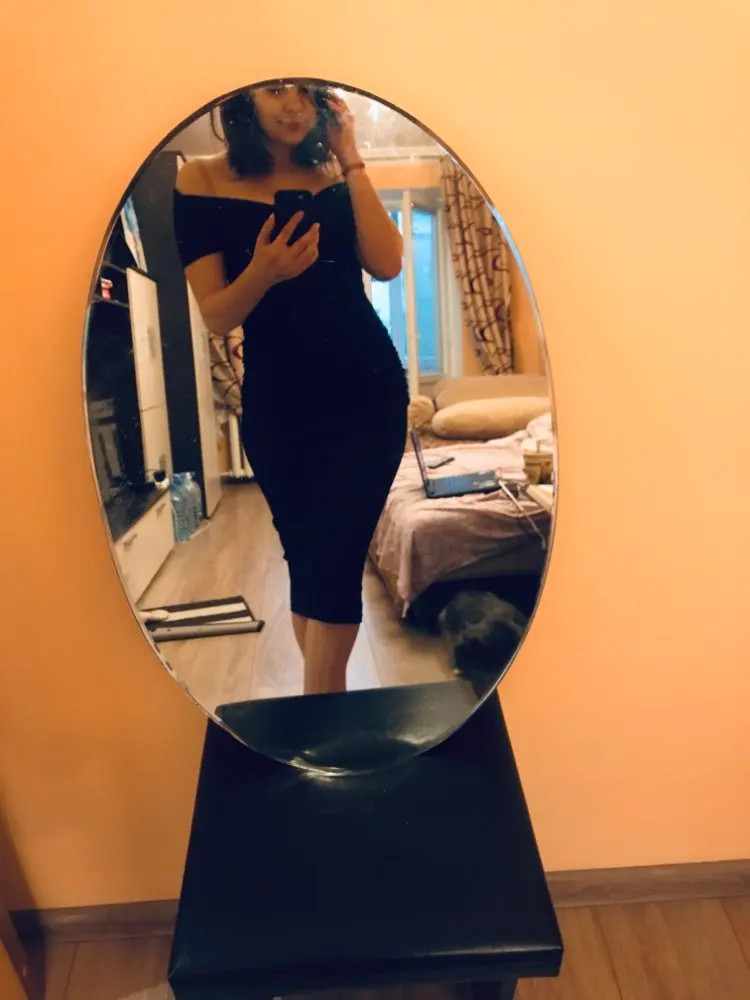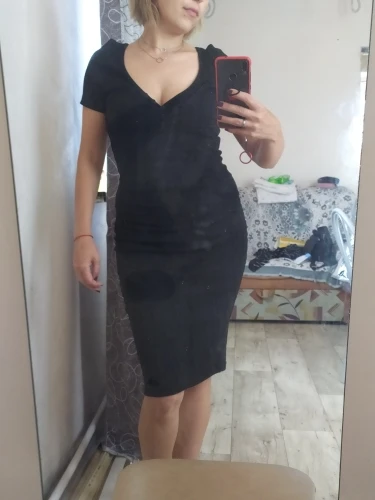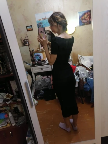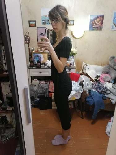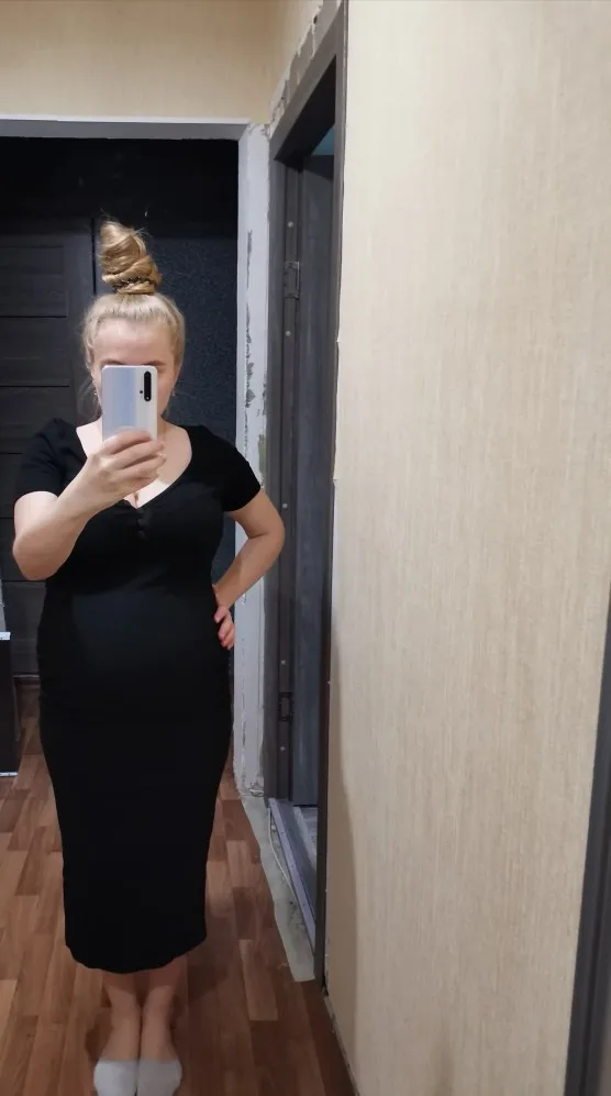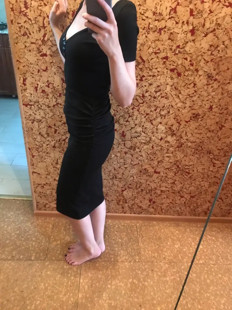 The dress is gorgeous! I wear it without taking off! Very beautiful neckline, even on my small size, on my parameters 83/66/90 took the size M, I sat perfectly, a dress with drapery in the area of the hips-for girls with shortcomings of the figure, it will perfectly hide, for girls with a good figure-will create shortcomings) I recommend the dress, I did not communicate with the store, delivery in 3 weeks