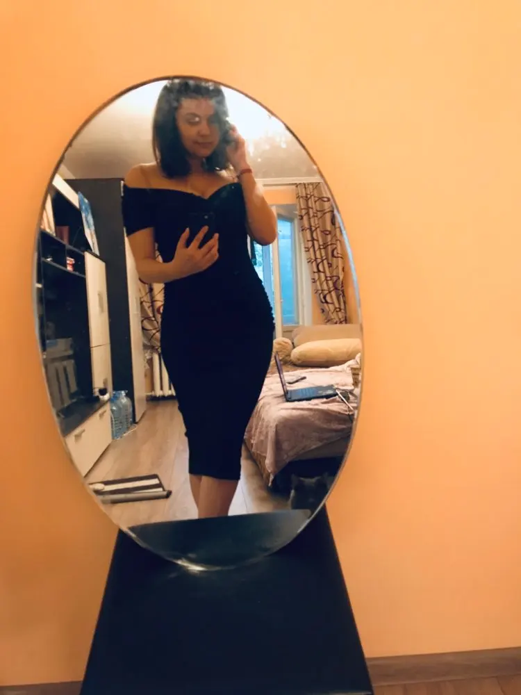 Girls, bomb dress! My parameters: 91-72-97 ordered size L, sat as necessary, nowhere does not squeeze, on the waist there is a small assembly of fabric, which well closes the shortcomings of the figure (tummy). My chest is very wide, so I do not know how to sit a dress in m size. Krasnodar arrived in 12 days, instant processing and sending order. Super!!!!