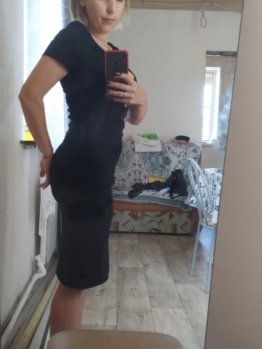 Delivery for a couple of weeks, the dress is beautiful, the fabric is mixed with a cloth as if with cotton, stretches medium. I changed my own a little, cut off and emptied the rubber bands on the sides, it is necessary to sew a cutout on one button. On the parameters 95-72-100 m came up perfectly