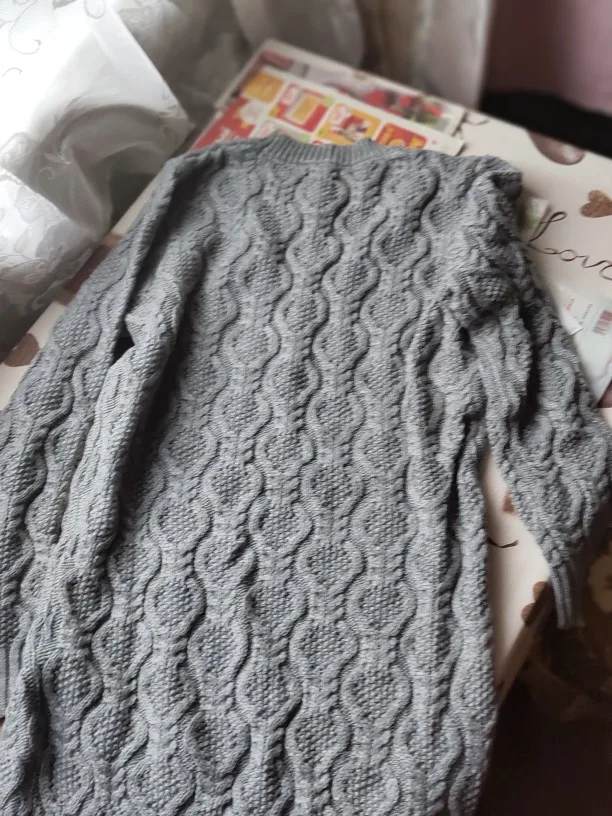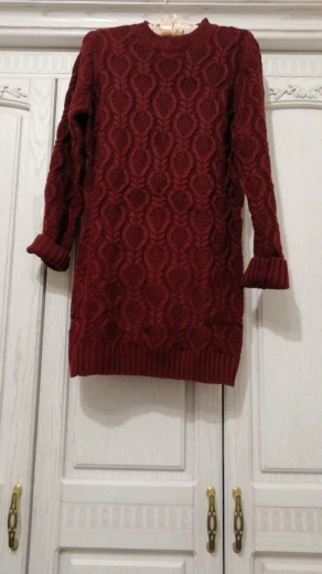 I liked the dress-sweater. Very neat knitting. The material is pleasant to the body. Accidentally instead of m, took XL. Perfectly suited to my height 176, I think that if I took M, there would be sleeves short. Quality is good. The color is darker than in the photo of the mating of the dress, that's exactly what I wanted. Recommend.