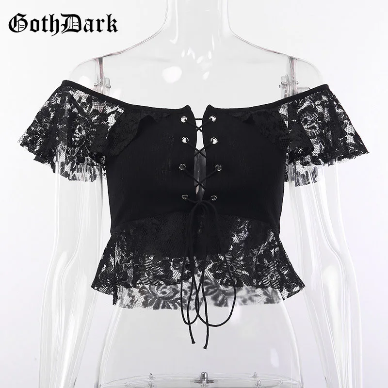 FREE SHIPPING Black Lace T-shirts Mesh OG659