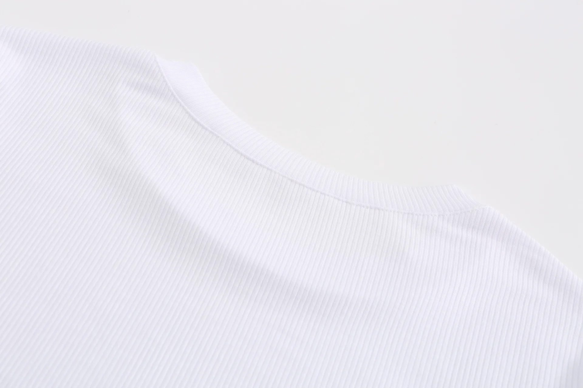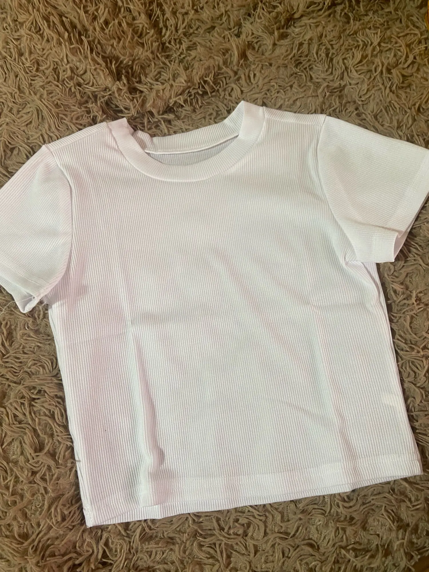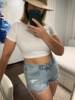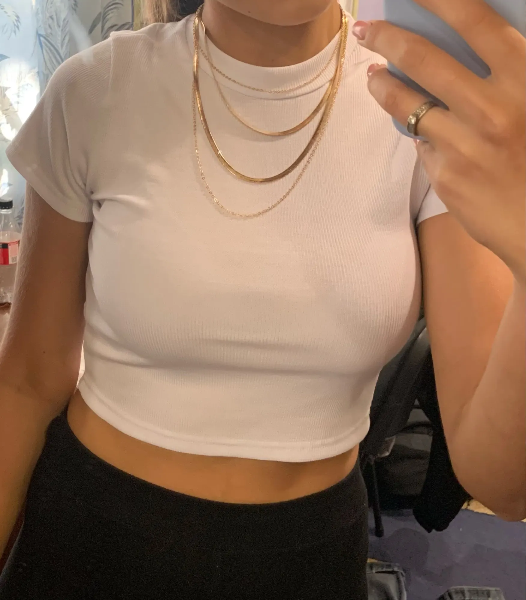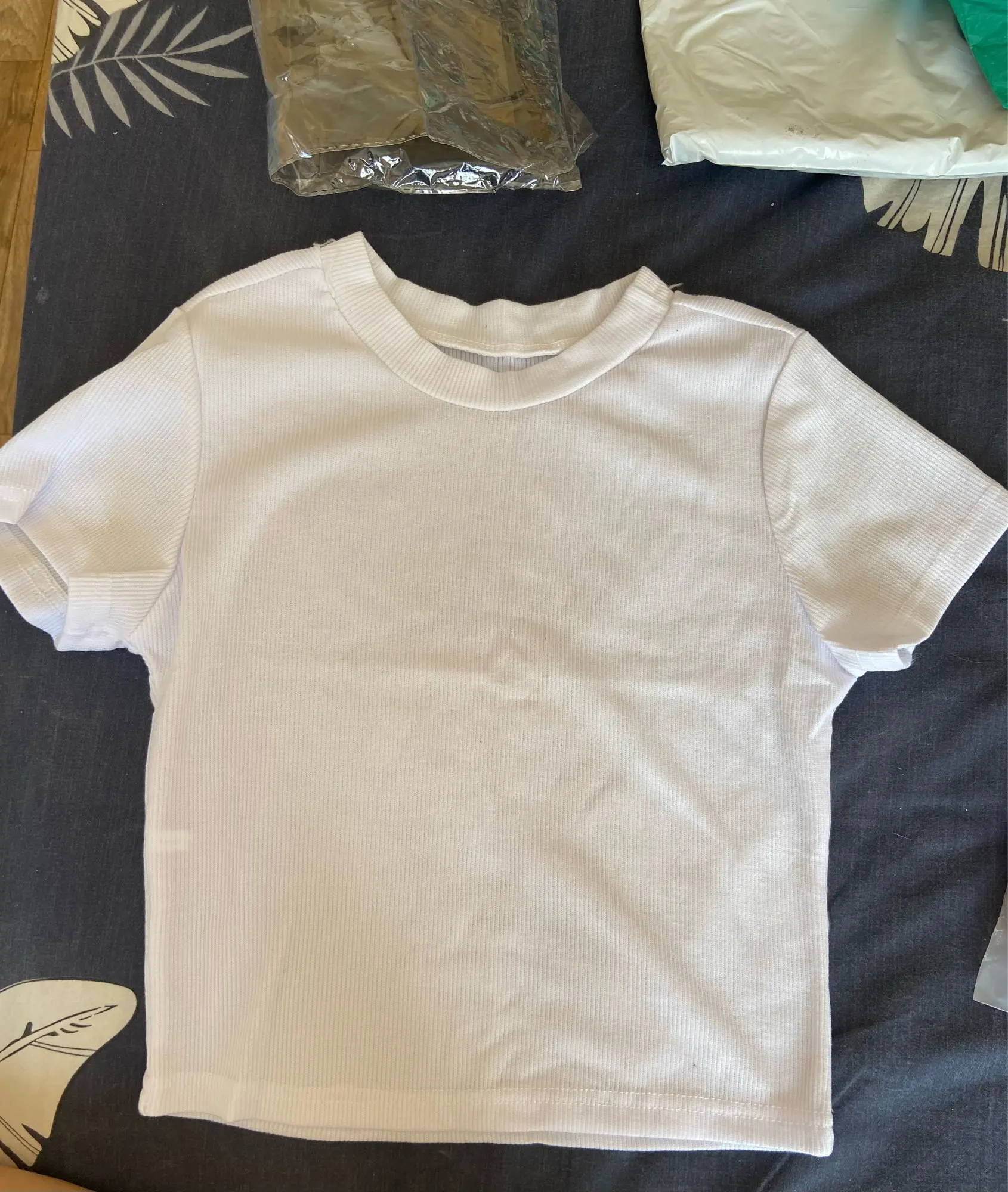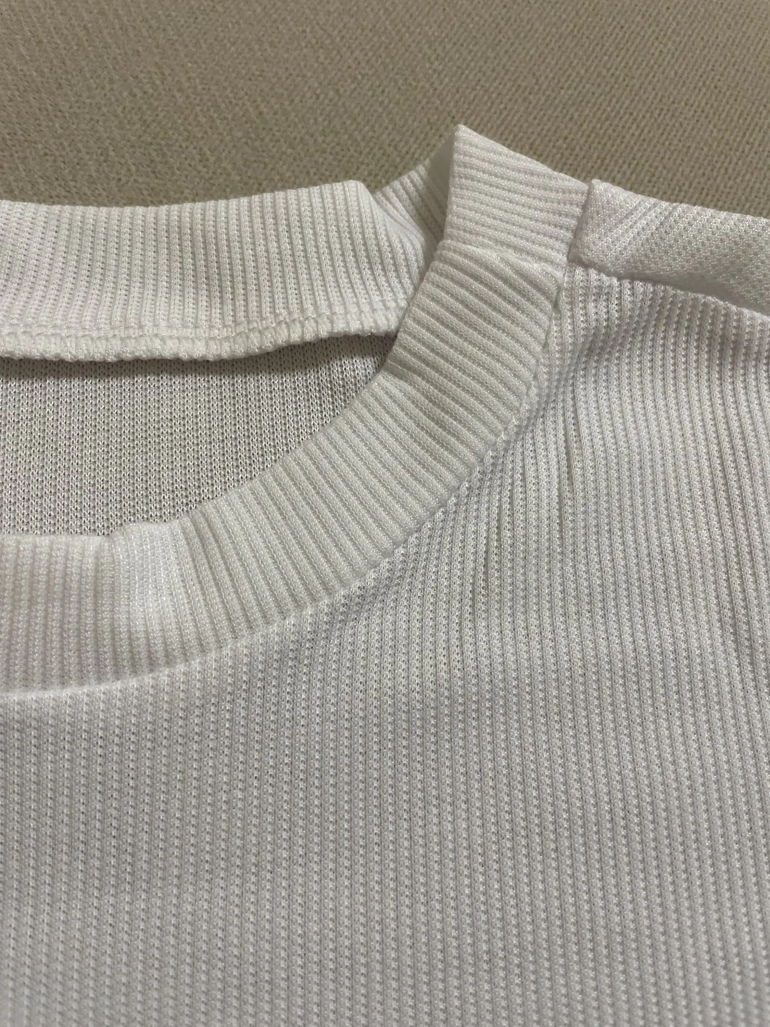 White Top: The fabric stretches, does not shine through. Parameters-og: 85, OT: 61, height: 172