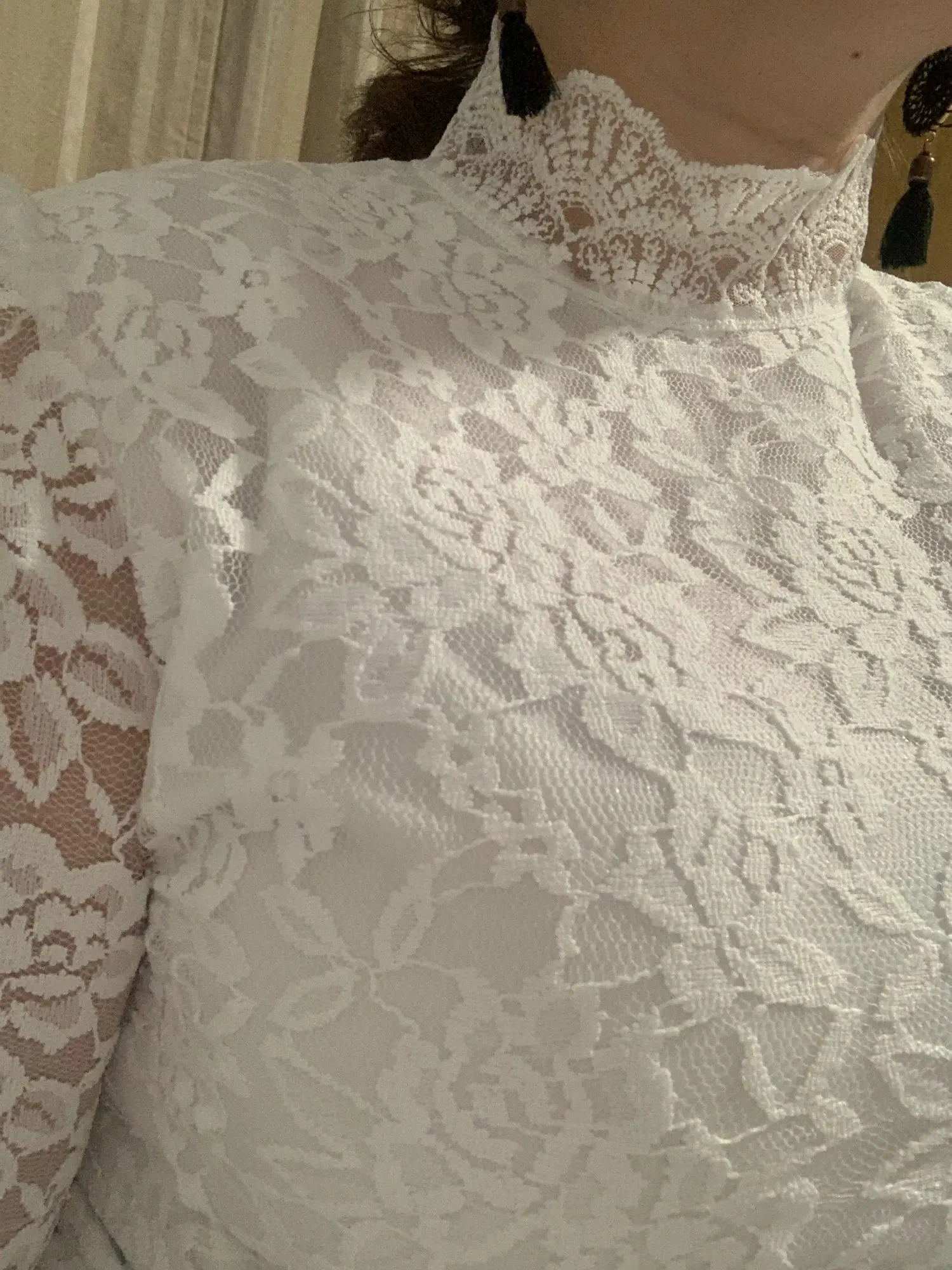 Good blouse, guipure decent: not thin, looks good. At 46-48 is good. With the store did not communicate, there was no need