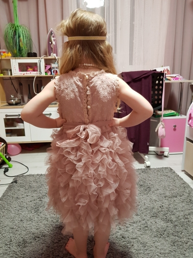 Ordered T3 for a girl of 90 cm for 2 years, it will be a little more! But this is for the best! The dress is very beautiful, it claps up, the bottom is made of mesh cut and sewn! The dress is very cool!! I want to order the second as a gift!!! Thank you very much to the store for the fast delivery