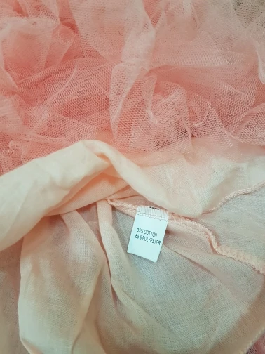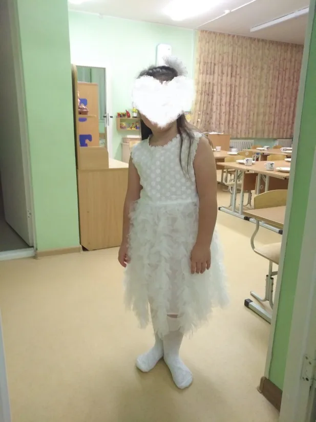 Excellent dress, thin, light. At a height of 98 cm (3 years) 4 the size of the villages with a margin, but you can already wear it now. The top and lining is cotton, the top skirt is synthetic, but soft. Accessories quality. Delivery is very fast, the order has issued 27.10, and 10.11 parcel came to the country