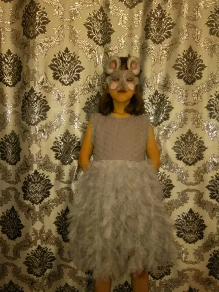 The parcel arrived in 20 days. Tracked. The dress came the same as in the photo. At a height of 126 cm 8 t is ideal. There are jambs on the first photo can be seen, I align with scissors. And so the dress is good, took for 585. In the new year we will be a mouse)). Lining 100% cotton.