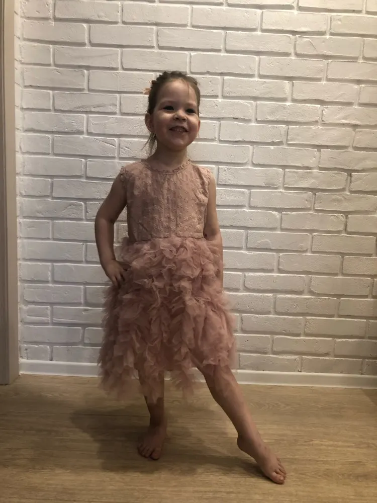 Ordered T3 for a girl of 90 cm for 2 years, it will be a little more! But this is for the best! The dress is very beautiful, it claps up, the bottom is made of mesh cut and sewn! The dress is very cool!! I want to order the second as a gift!!! Thank you very much to the store for the fast delivery