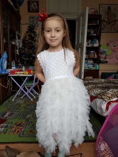 I ordered 29.12. Today 21.01 received at the post office. The dress is just wonderful I hope my granddaughter likes. Top HB, povyubnik like too, the tulle skirt itself. The loops correspond to the buttons. Sewn very neatly. Track tracked. Thank you very much for the fast delivery and quality goods.