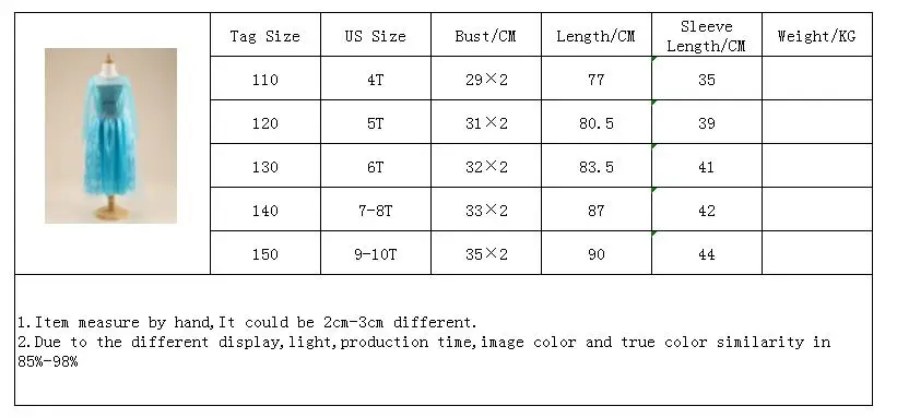 The dress itself is beautiful-excellent quality (seams, nice fabric, lining, embroidery), definitely recommend. With a closer size-4 T this is years by 5 (110). Strongly pumped delivery, and the store sent Not immediately, but with the track and was not clear, I do not know even which of the posts spoiled more, because. During December, the parcel was in an unknown dimension. By the time of receipt of the parcel I already had time to return the money, and Ng holidays, for which the dress was taken, have long passed. In general, I recommend the dress, but it is worth ordering with a huge margin of time.