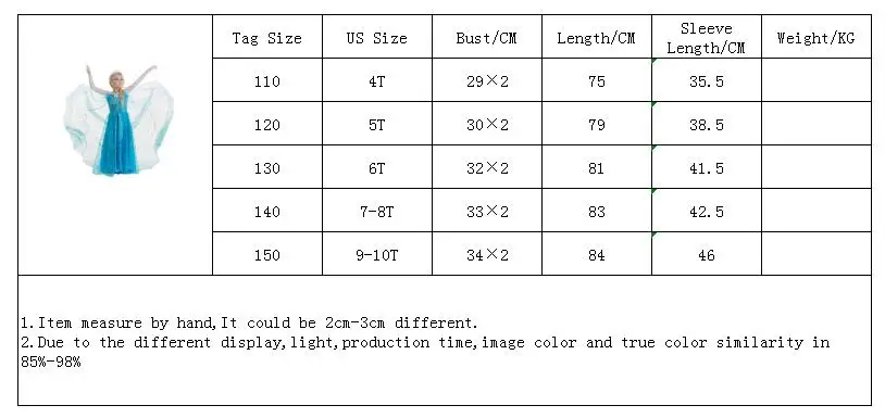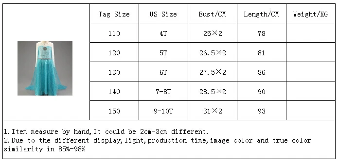 Wonderful dresses! the store forgot to sent the accesories I bougth for the snow white dress, I send a message and he sent it without problem.