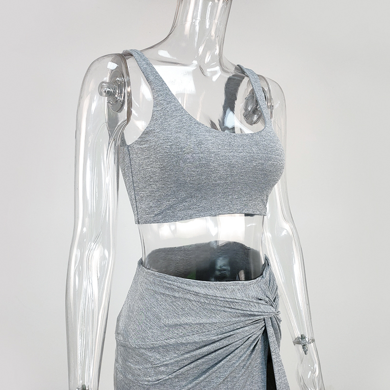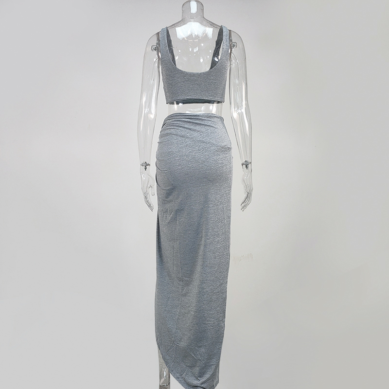 FREE SHIPPING Club Two Piece Outfits 2021 Crop Top Twist Side Split Long Skirts OUT0856