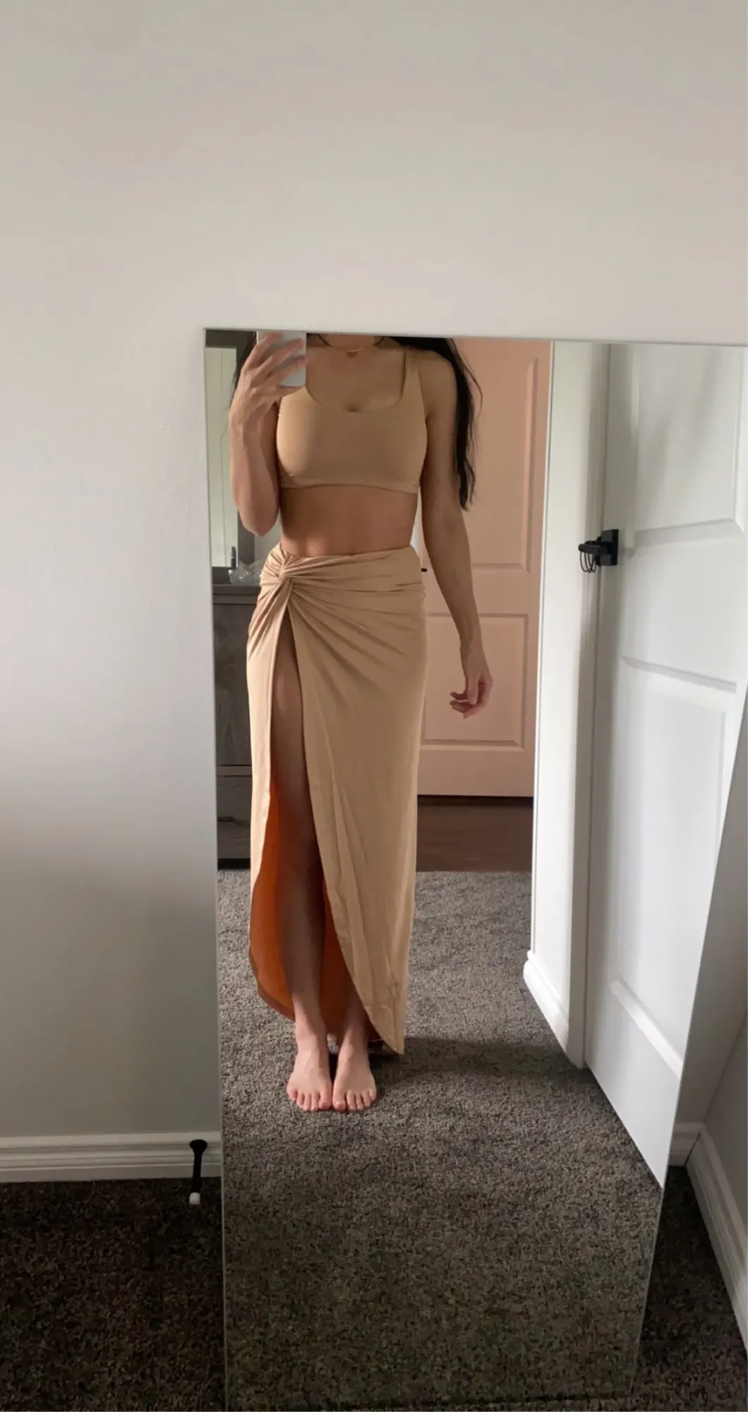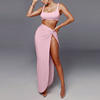 FREE SHIPPING Club Two Piece Outfits 2021 Crop Top Twist Side Split Long Skirts OUT0856