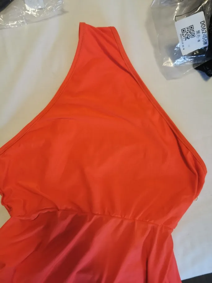 I took this suit 2 times. The first time in lavender color is a beautiful set, but I'm pale, so it did not look as impressive as when the bright color. Therefore, the second time took in Orange. And just wow. I'm very happy. The skirt is really long. My height is 181. And she doesn't look like kuz. Only very long delivery, more than a month to Moscow. Usually I Wear S, but here I took M, then what I need. If the chest is 3-4 size, S-Ku do not take, it will be ugly to press.