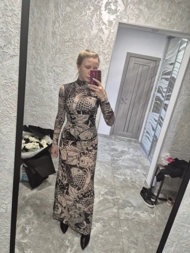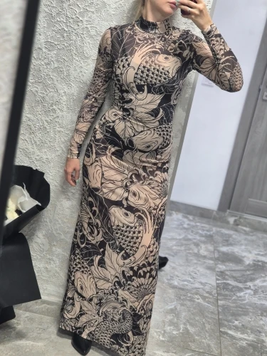 The dress is a mesh without lining, I took it as my first layer, and it fully met my expectations! very long, for height 160+ heel 7 cm= hem fits(!) on the floor 😄 Tactilely pleasant, seams are factory-treated. I recommend... if there were more colors, I would definitely take it.