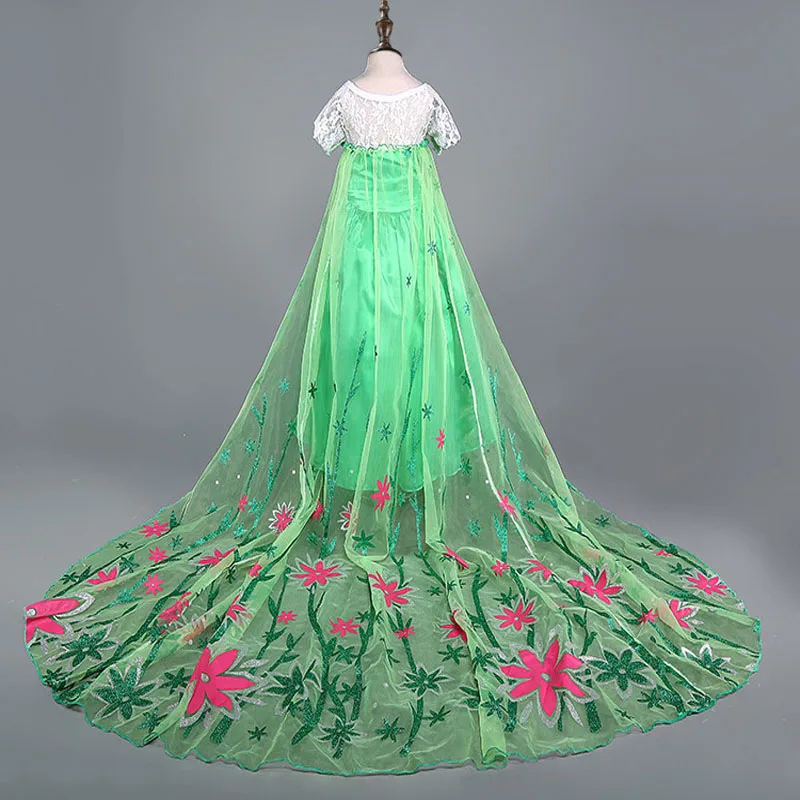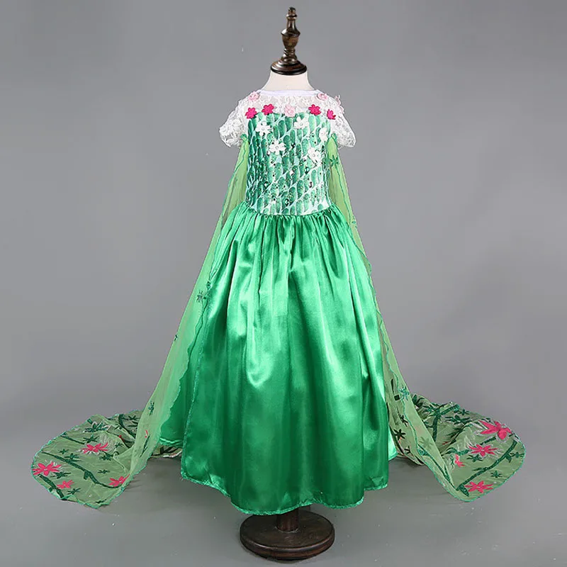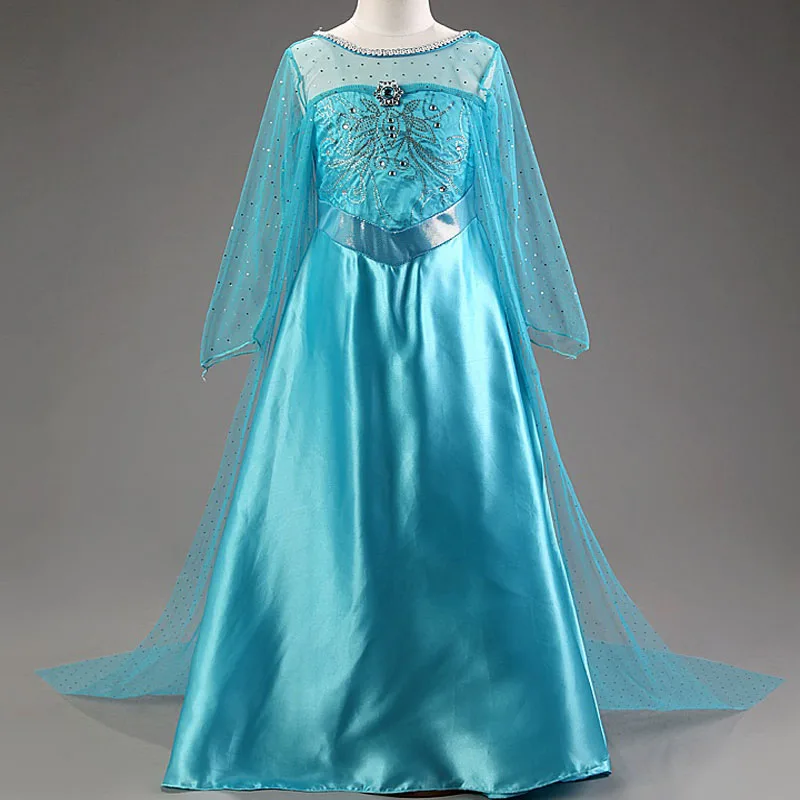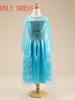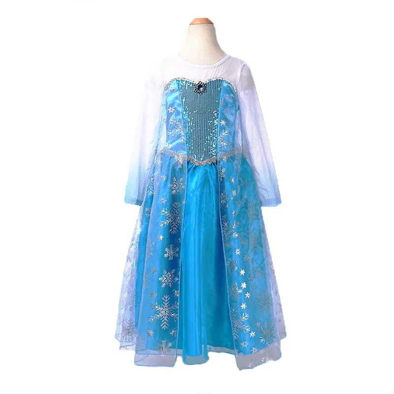 FREE SHIPPING Elsa Dress girls Party Vestidos Cosplay Girl Clothing Anna Snow Queen Print Birthday Princess Dress Kids Costume L0267